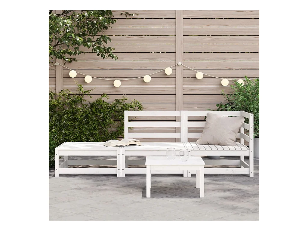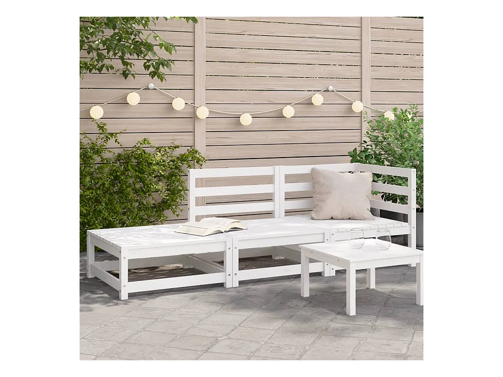 Canapé de jardin et coussins 2 places blanc bois de pin massif FR89357