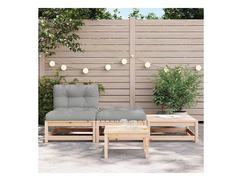 Canapé de jardin sans accoudoirs avec coussins et repose-pieds
