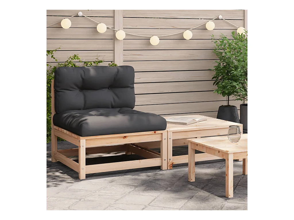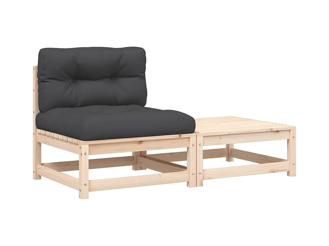 Canapé de jardin sans accoudoirs avec coussins et repose-pieds