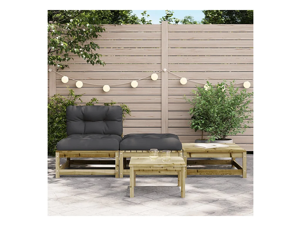 Canapé de jardin sans accoudoirs avec coussins et repose-pieds FR46754