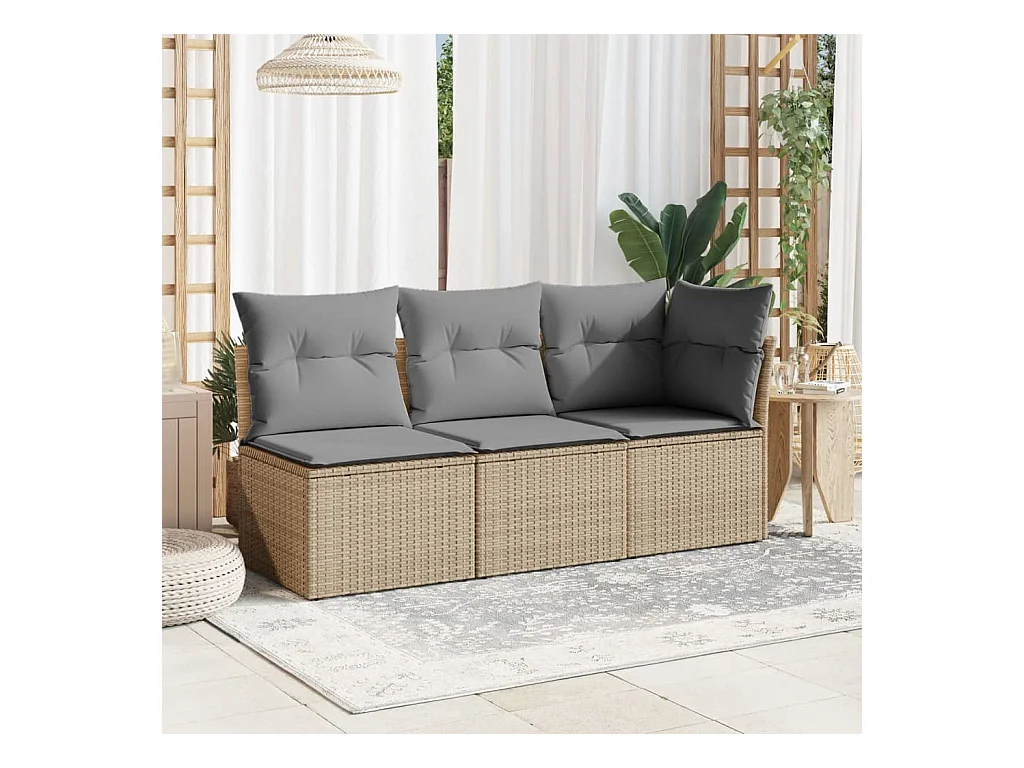 Canapé de jardin sans accoudoirs coussins beige résine tressée REO10090
