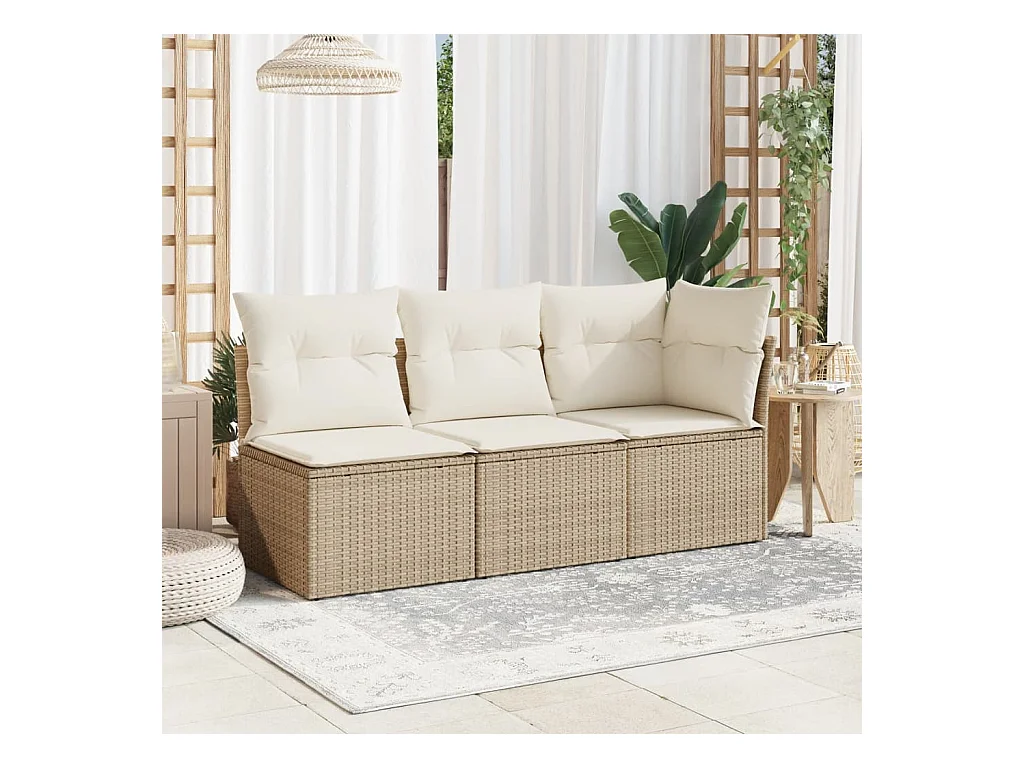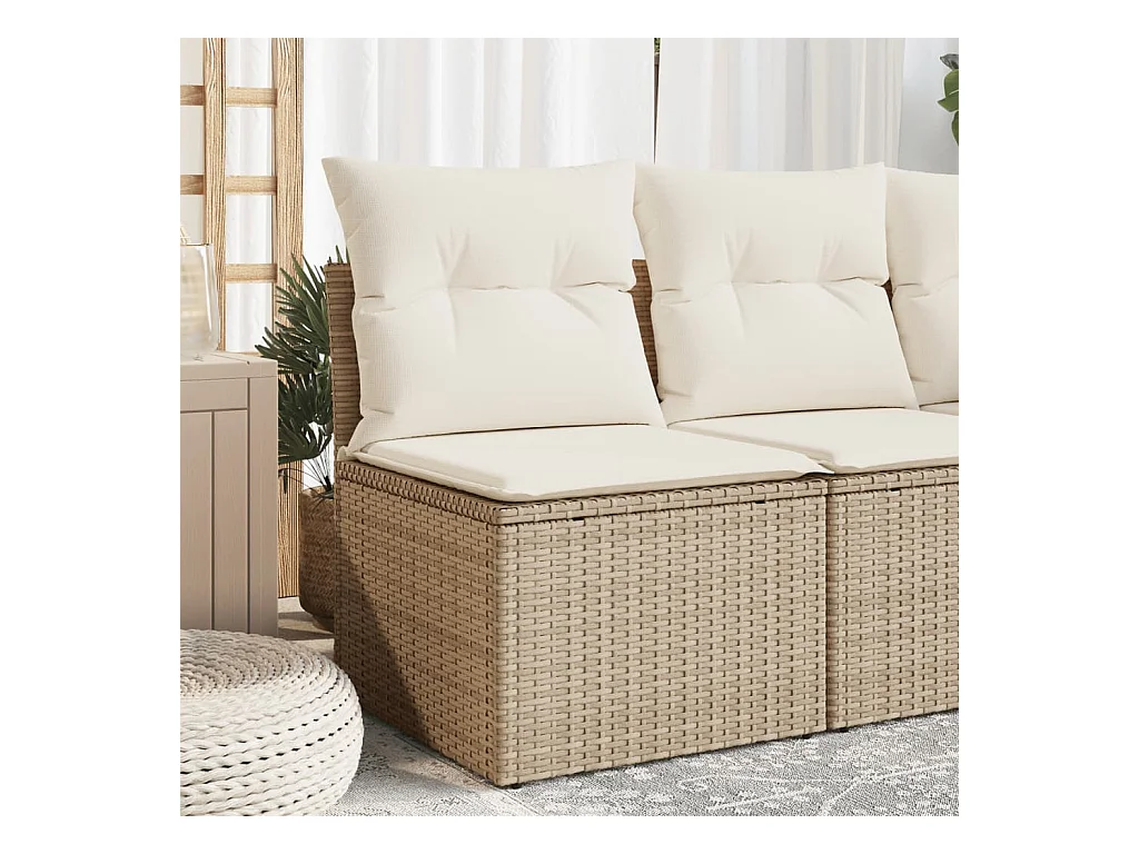 Canapé de jardin sans accoudoirs coussins beige résine tressée REO11578
