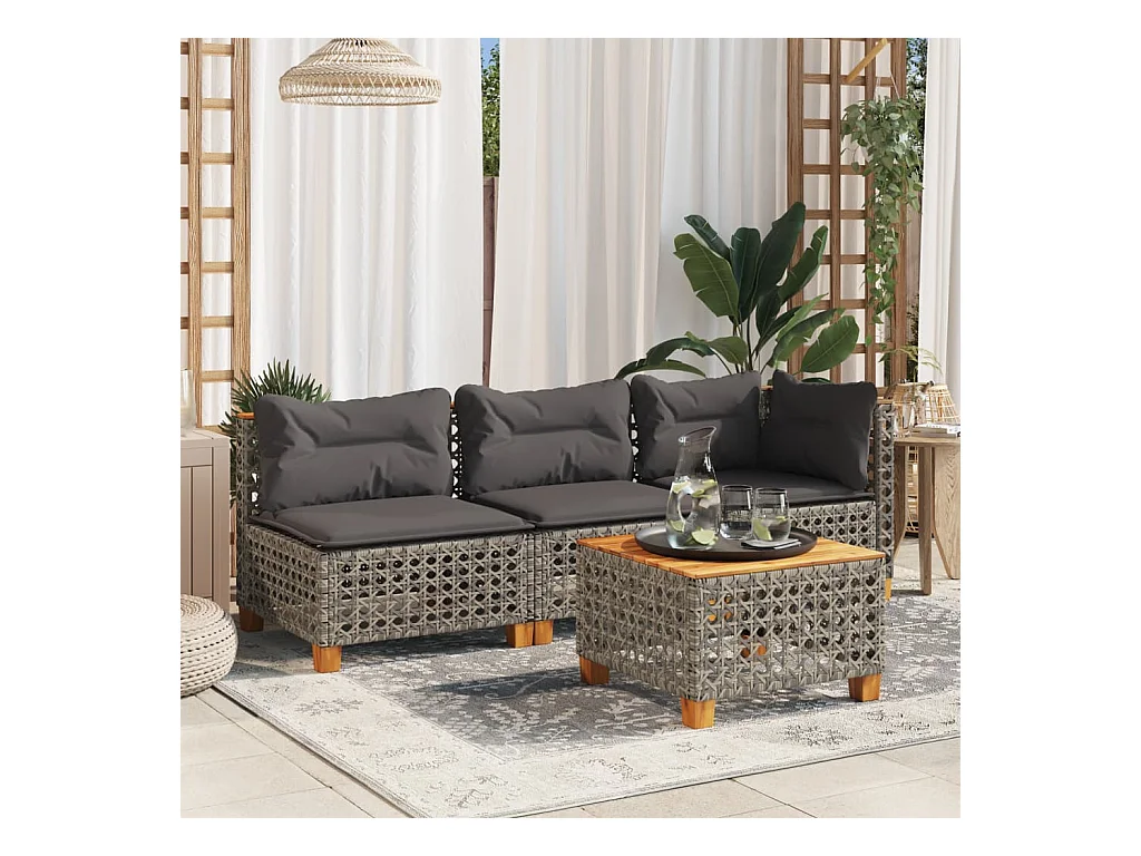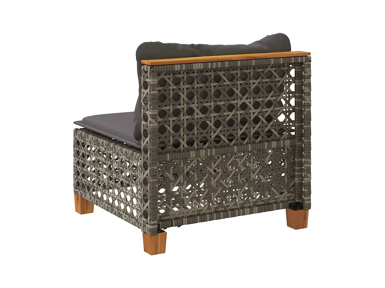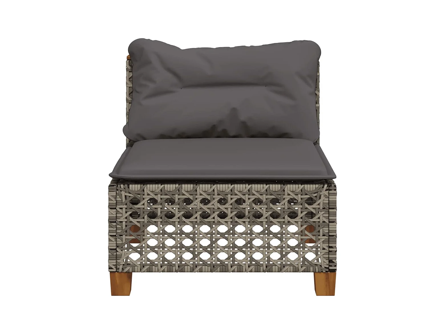 Canapé de jardin sans accoudoirs coussins gris résine tressée
