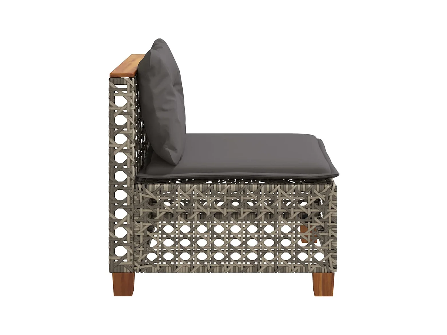Canapé de jardin sans accoudoirs coussins gris clair poly rotin