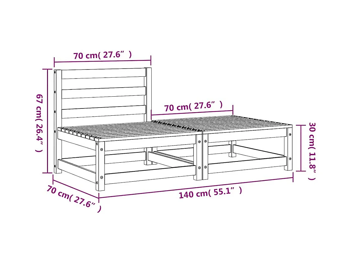 Canapé de jardin sans accoudoirs repose-pieds bois pin massif