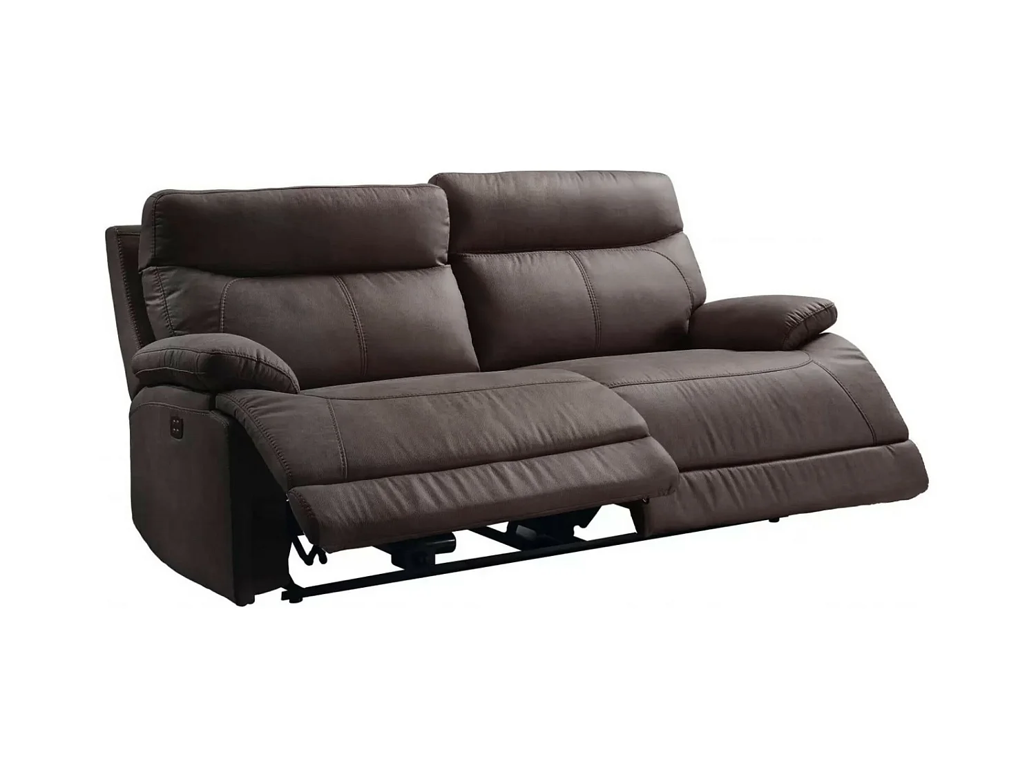 Canapé de relaxation électrique en microfibre Ducka-Couleur Marron-Système Electrique-3 places