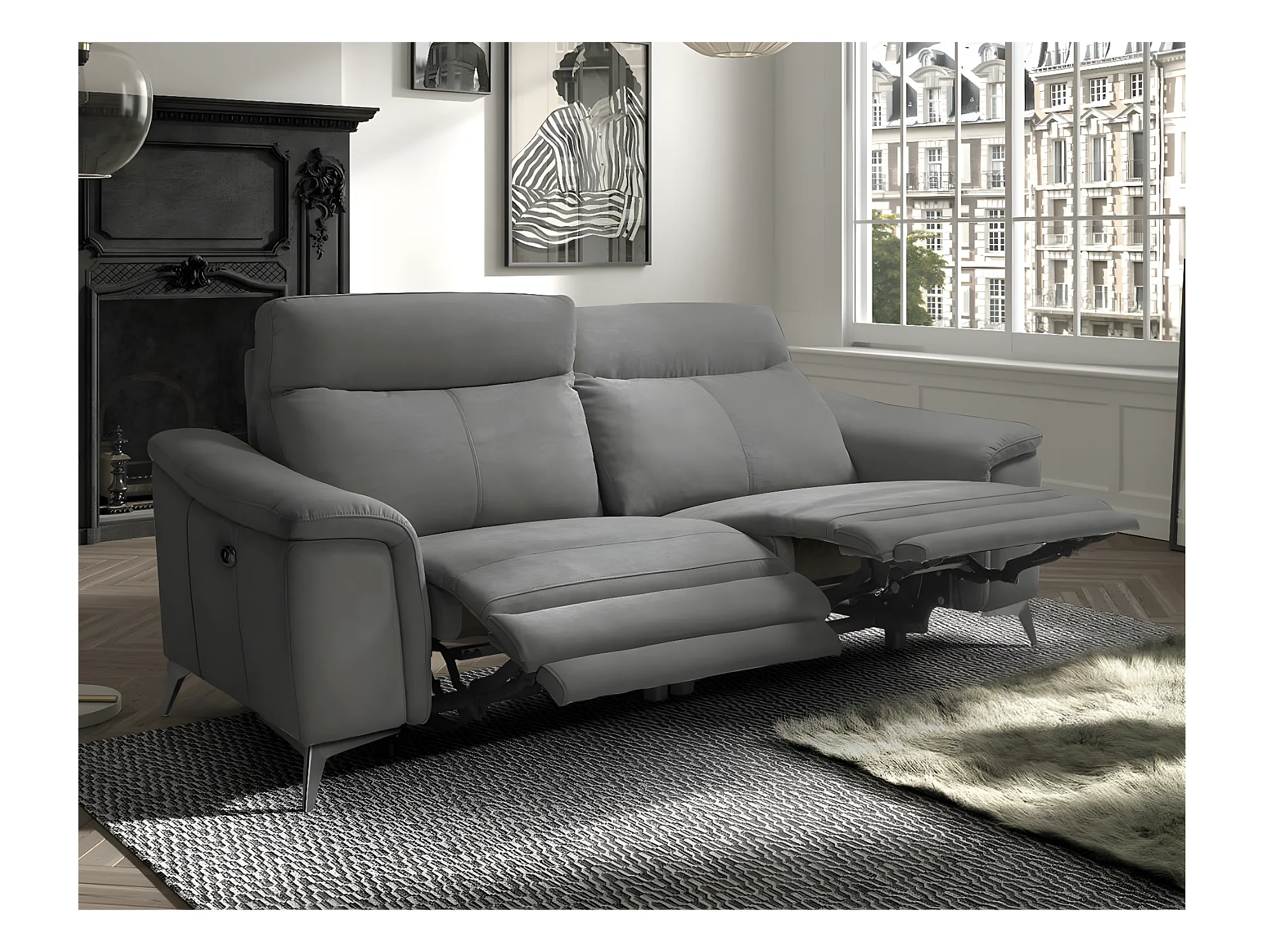 Canapé de relaxation en microfibre Kondonia-Couleur Gris-Système Electrique-3 places