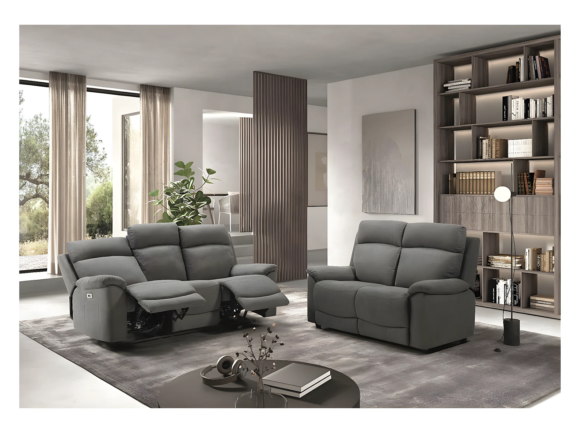 Canapé de relaxation en tissu Katika-Couleur Gris-Système Electrique-3 places