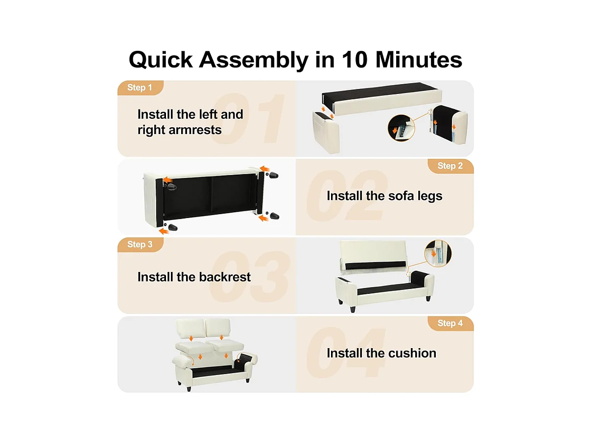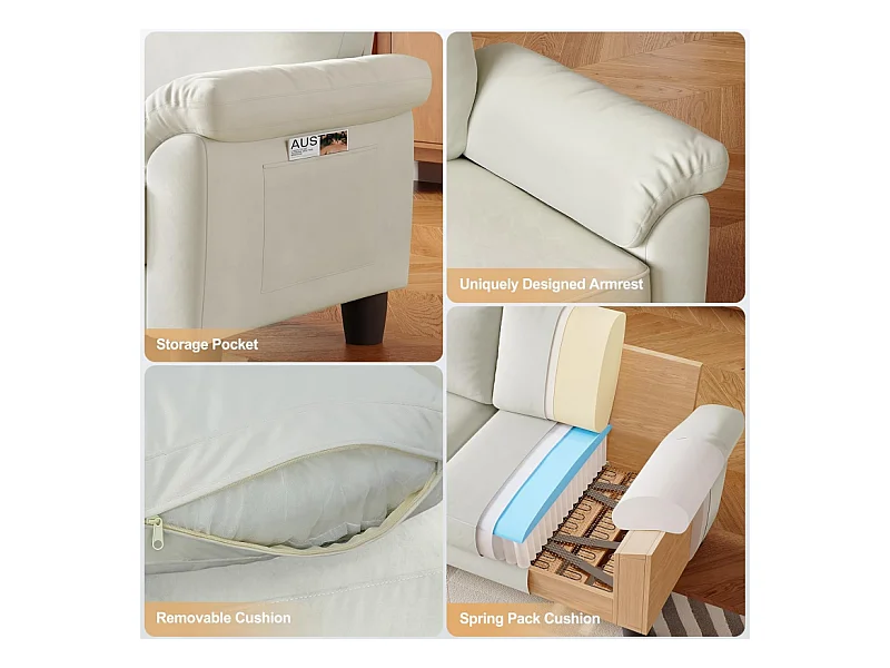 Canapé de salon 2 place en tissu chenille, Canapé moderne du milieu du siècle, avec sac de rangement, 178x75x87cm, Beige