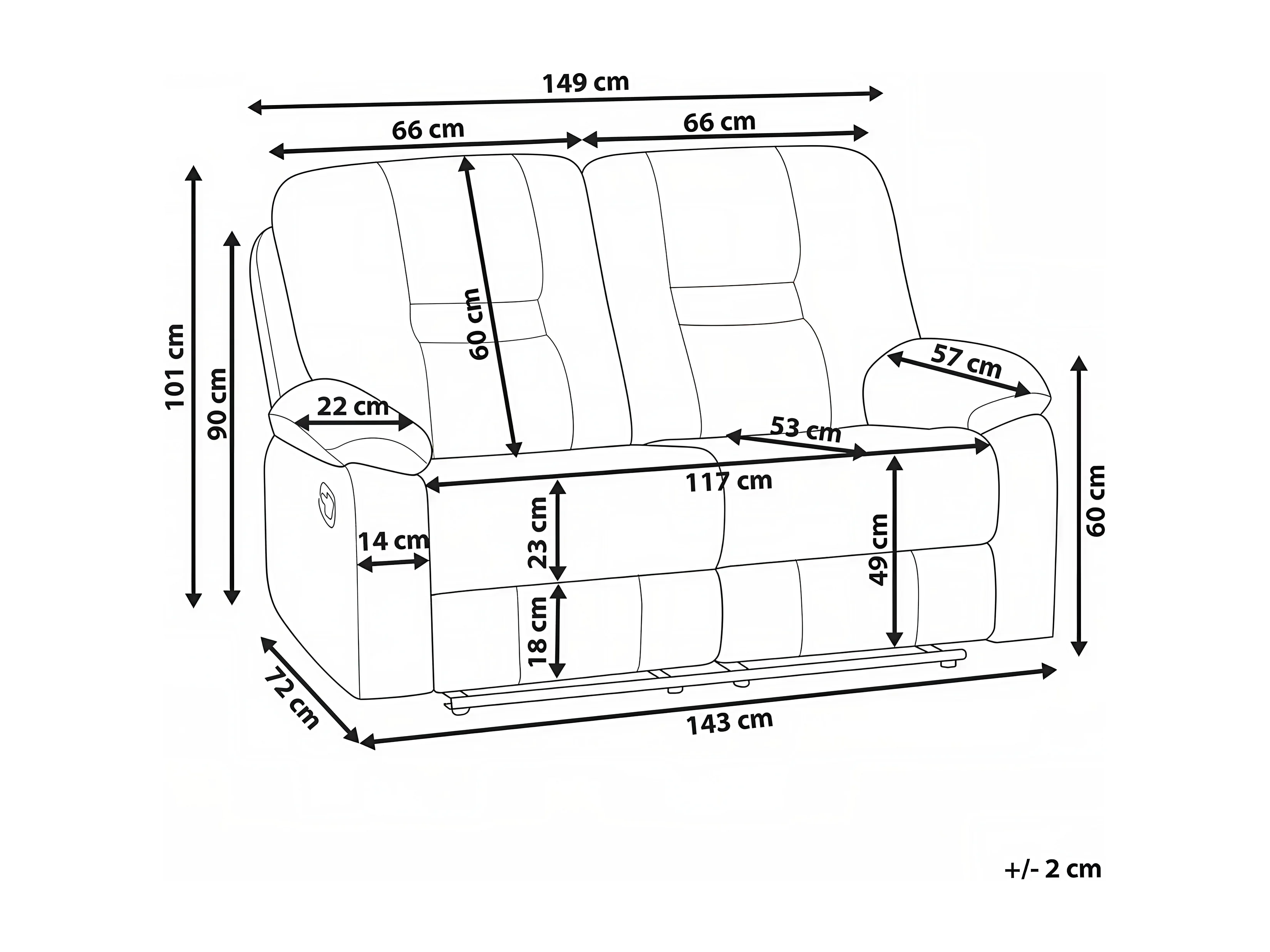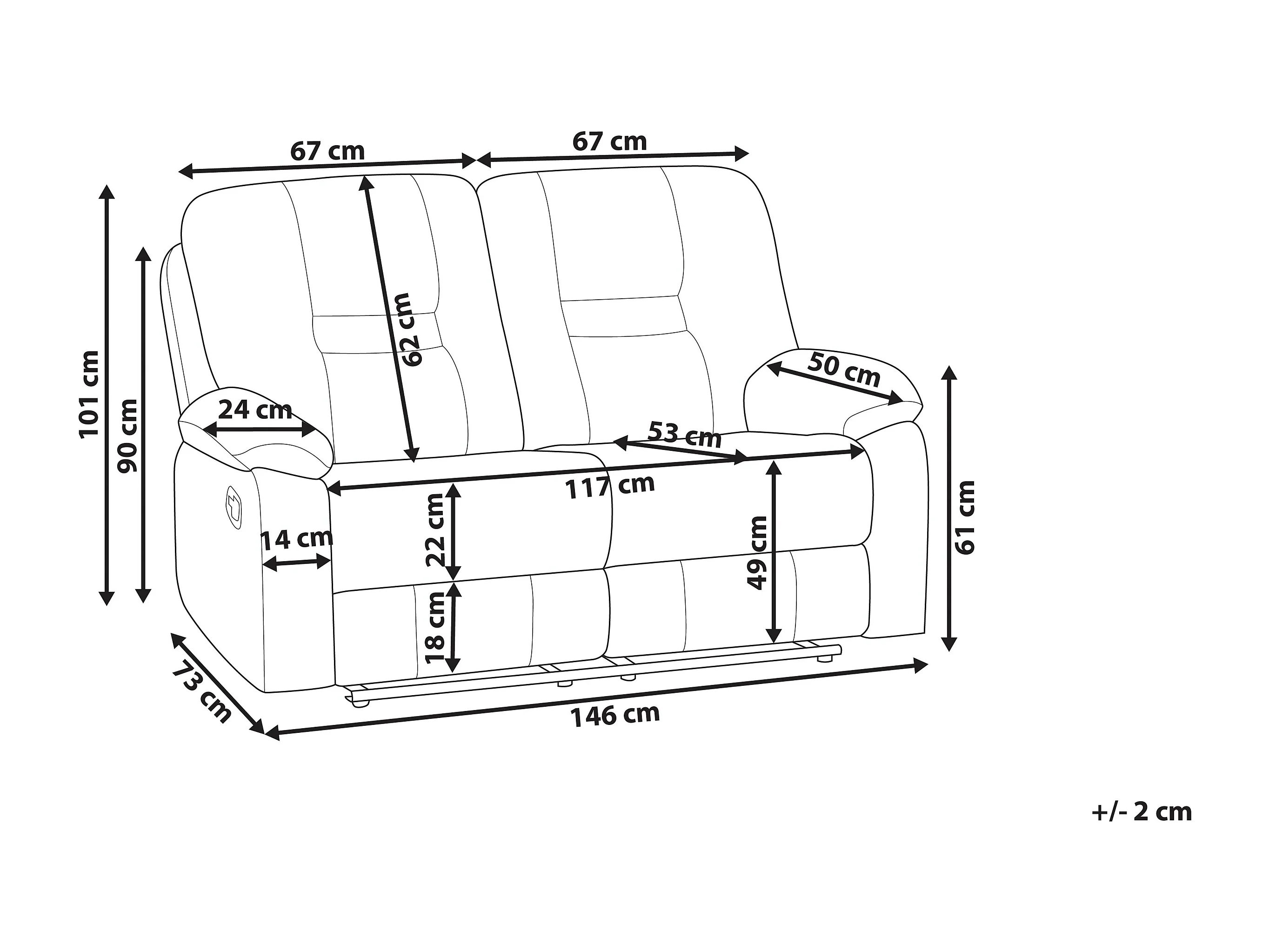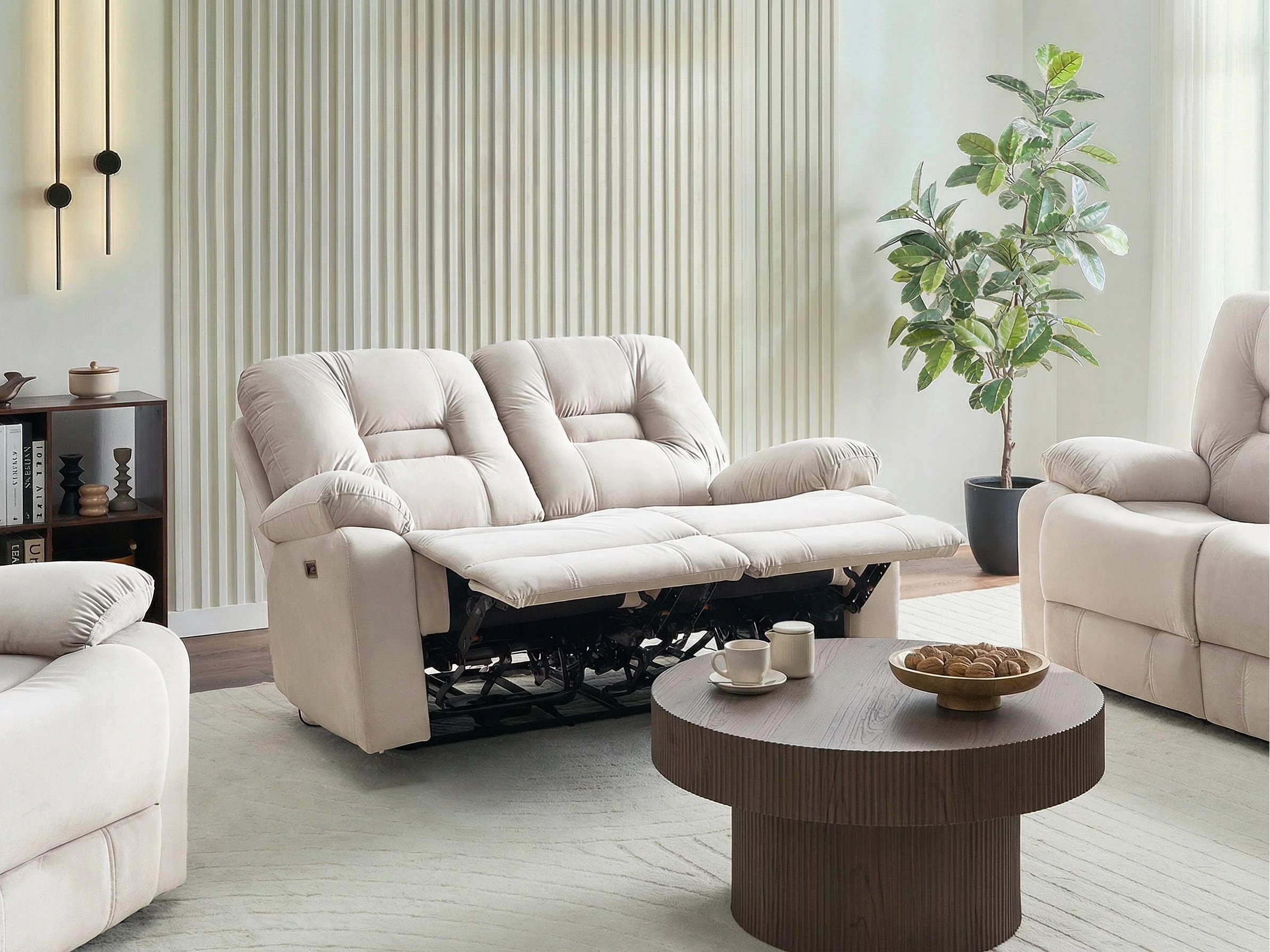 Canapé relax électrique 2 places BERGEN Velours Beige clair avec port USB