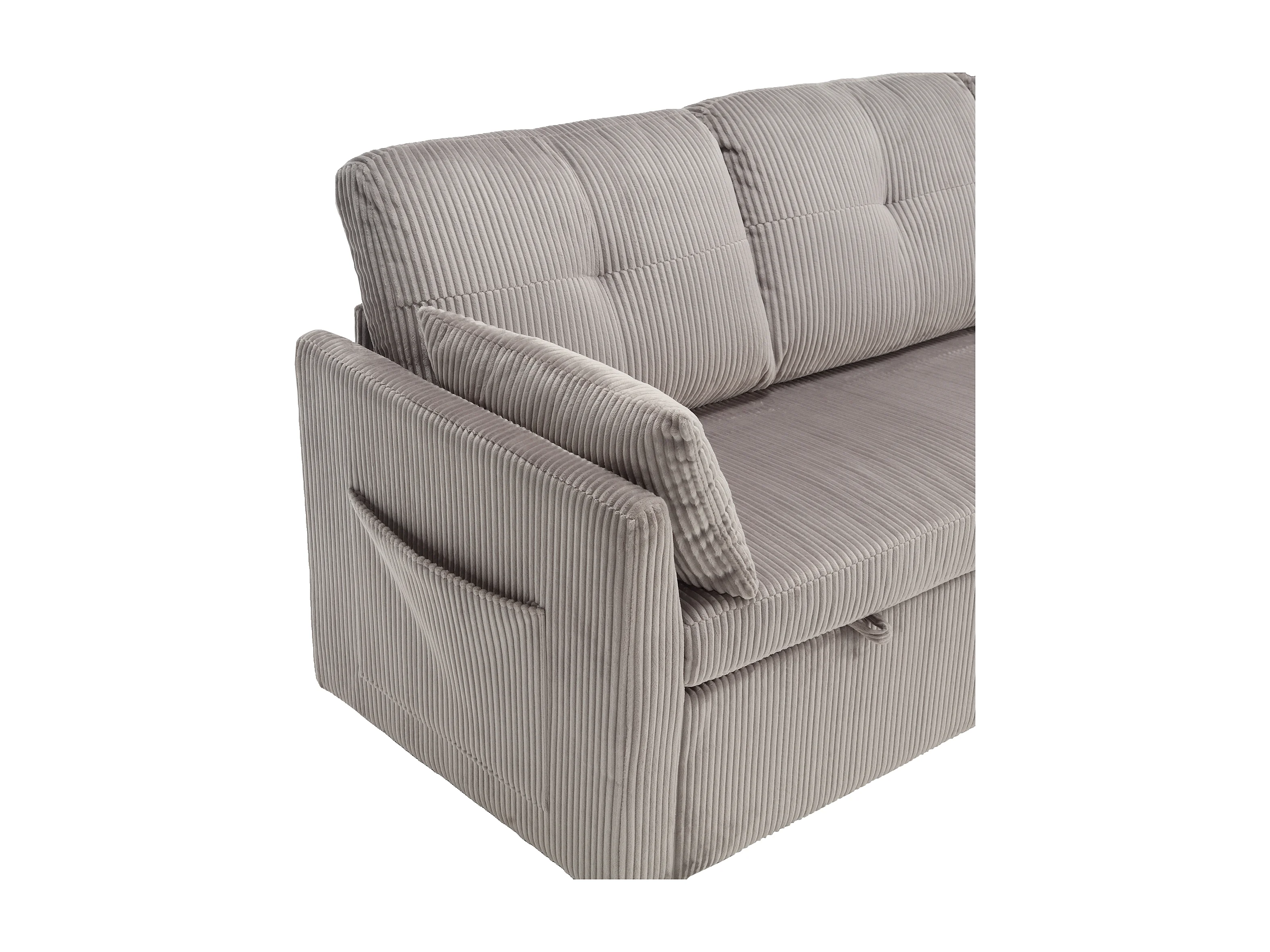 Canapé pour salon style contempain convertible avec grand espace de rangement en velours côtelé gris clair