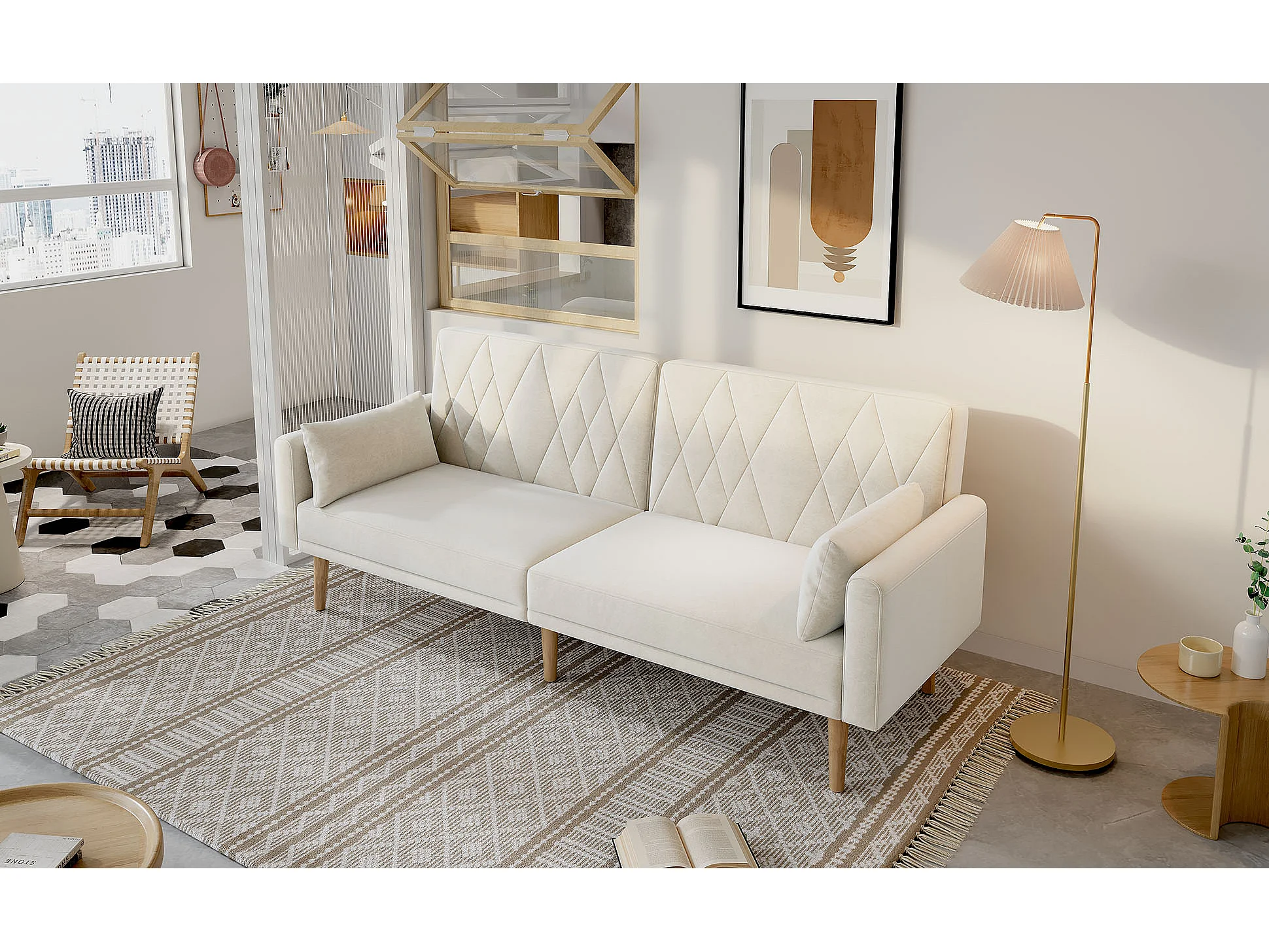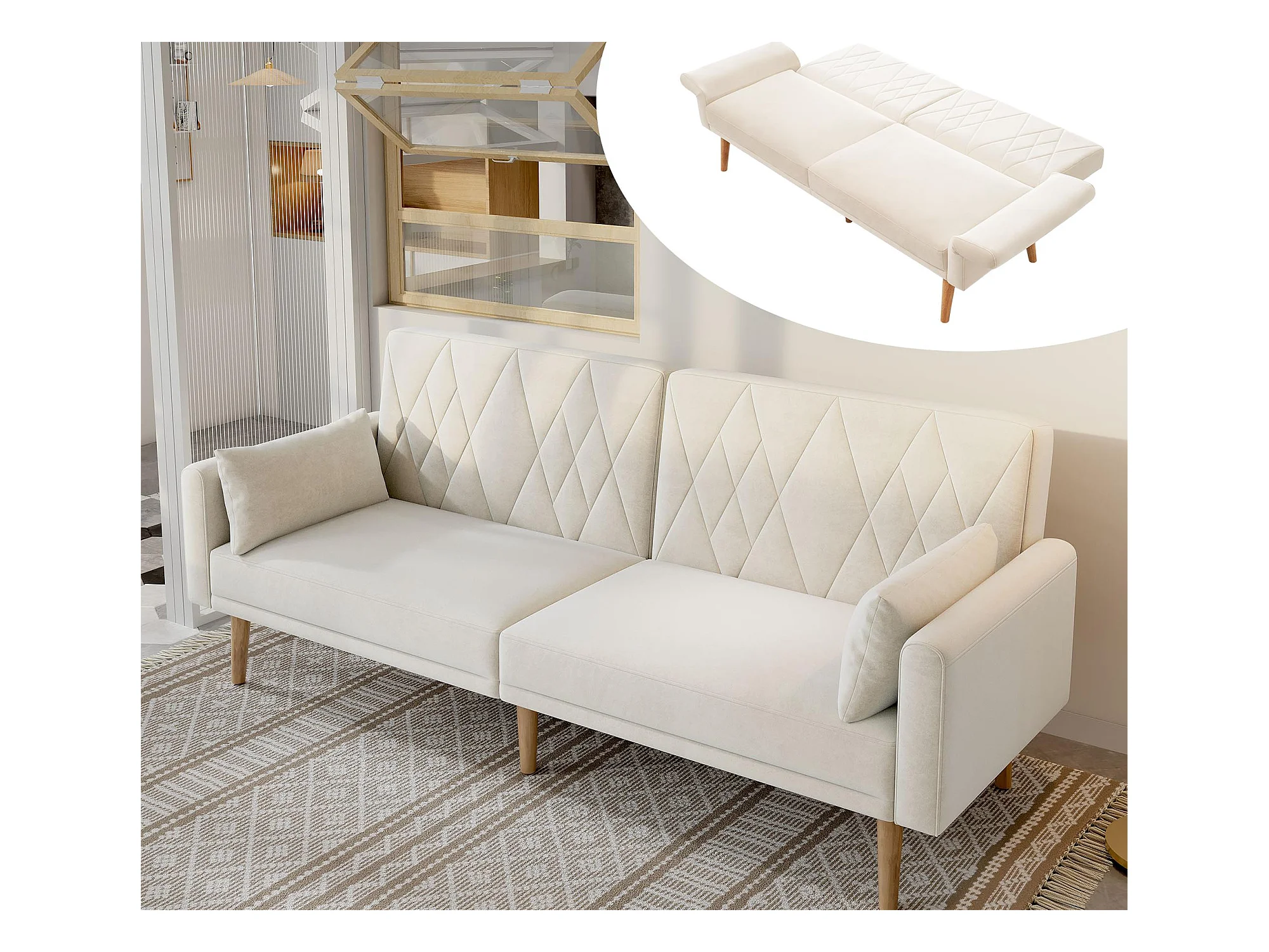 Canapé deux places 180x75x82cm - Dossier réglable- Velours - Beige