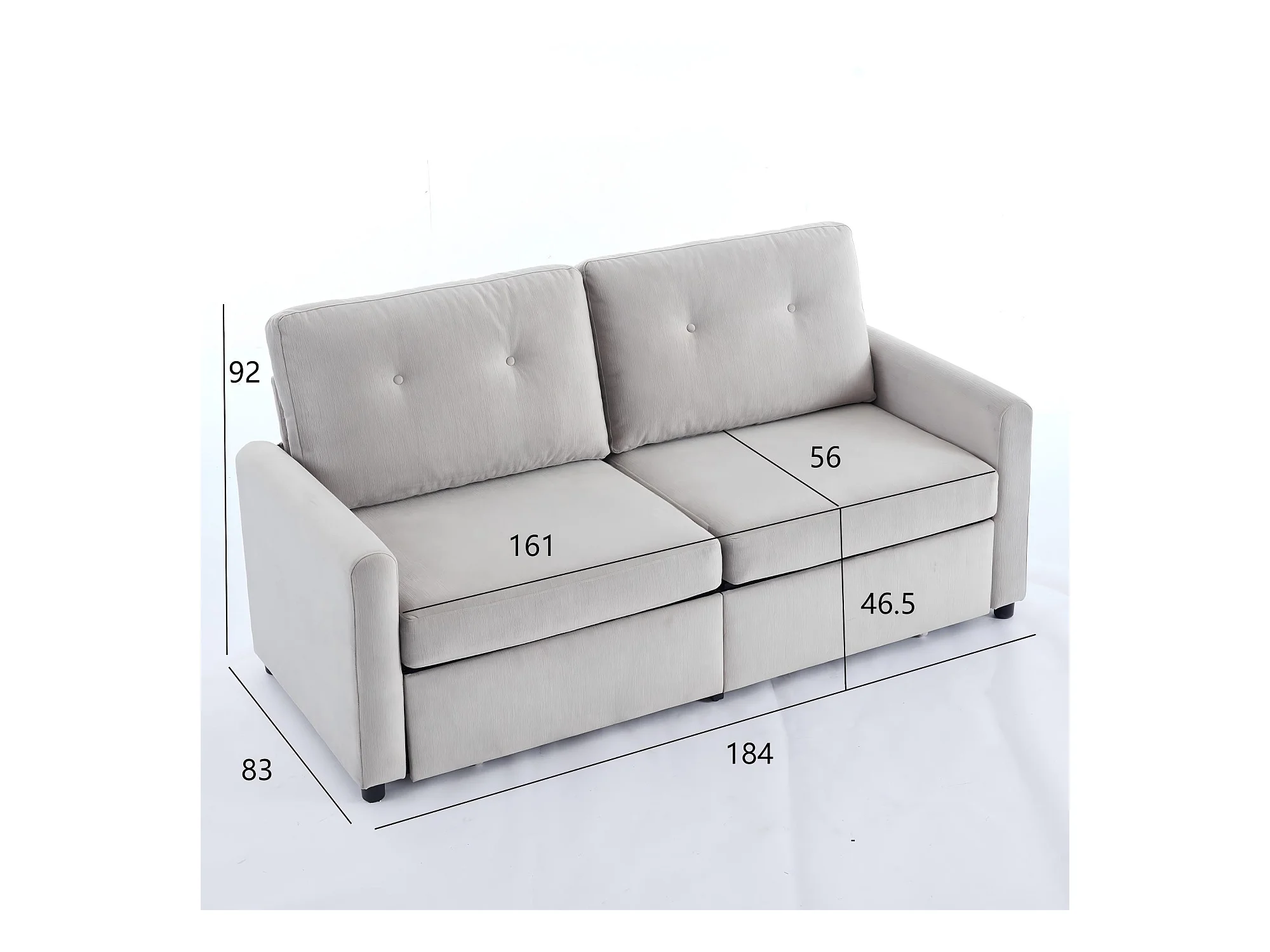 Canapé 2 places avec rangement, support téléphone réglable, tissu chenille, gris (127x69x66 cm)