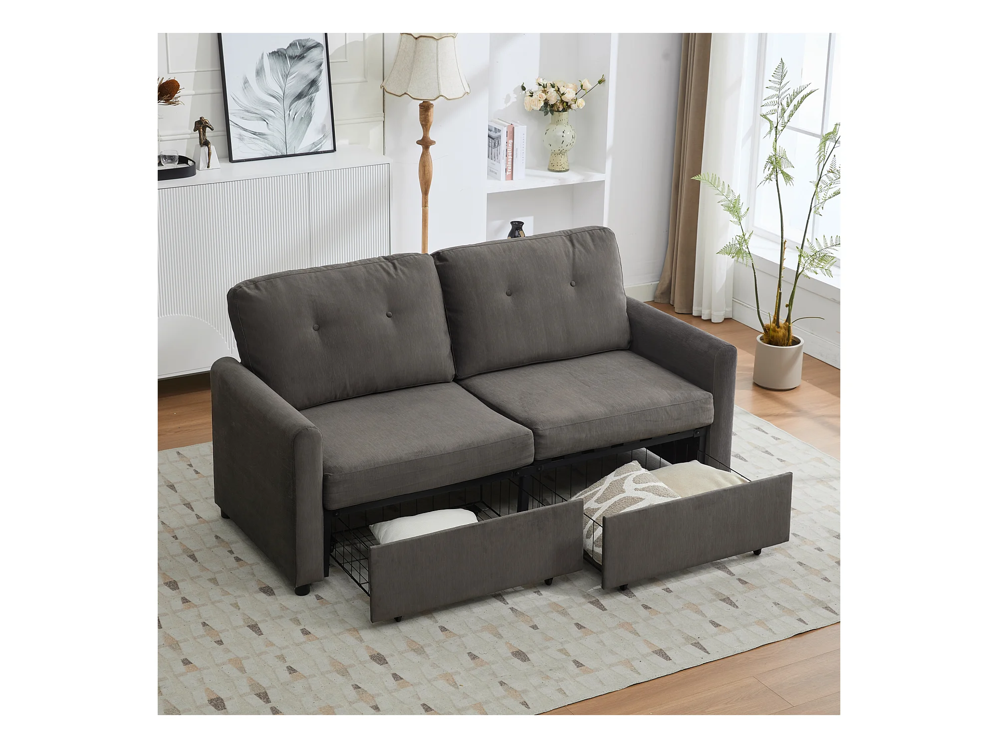 Canapé deux places avec tiroirs de rangement, gris foncé