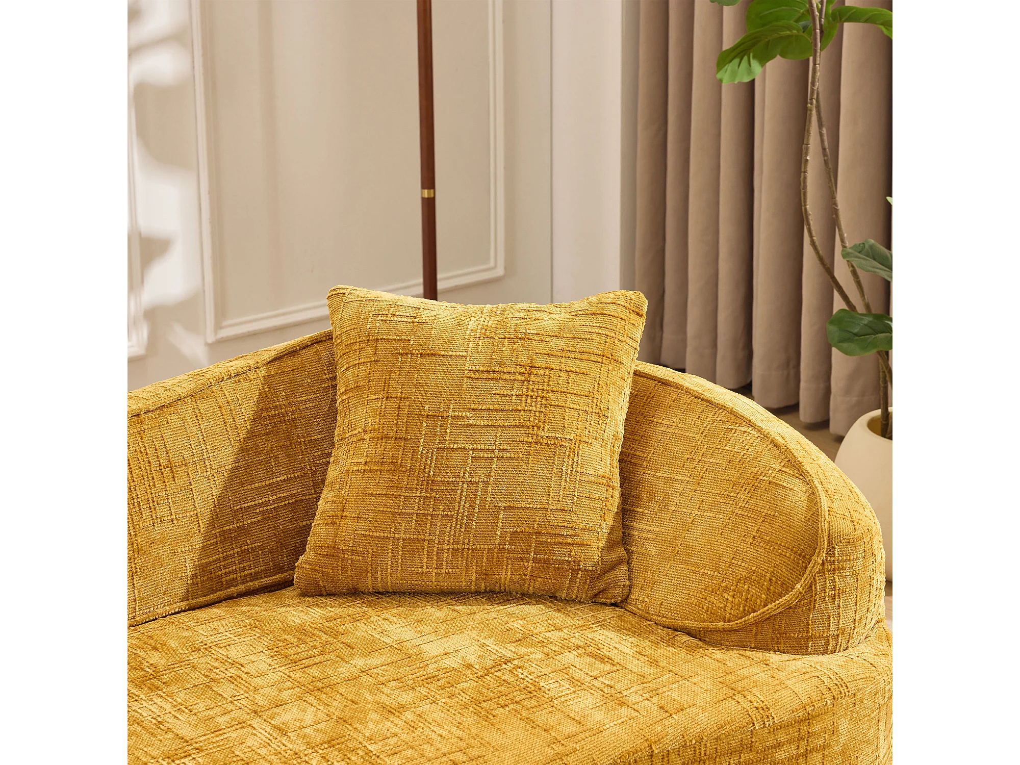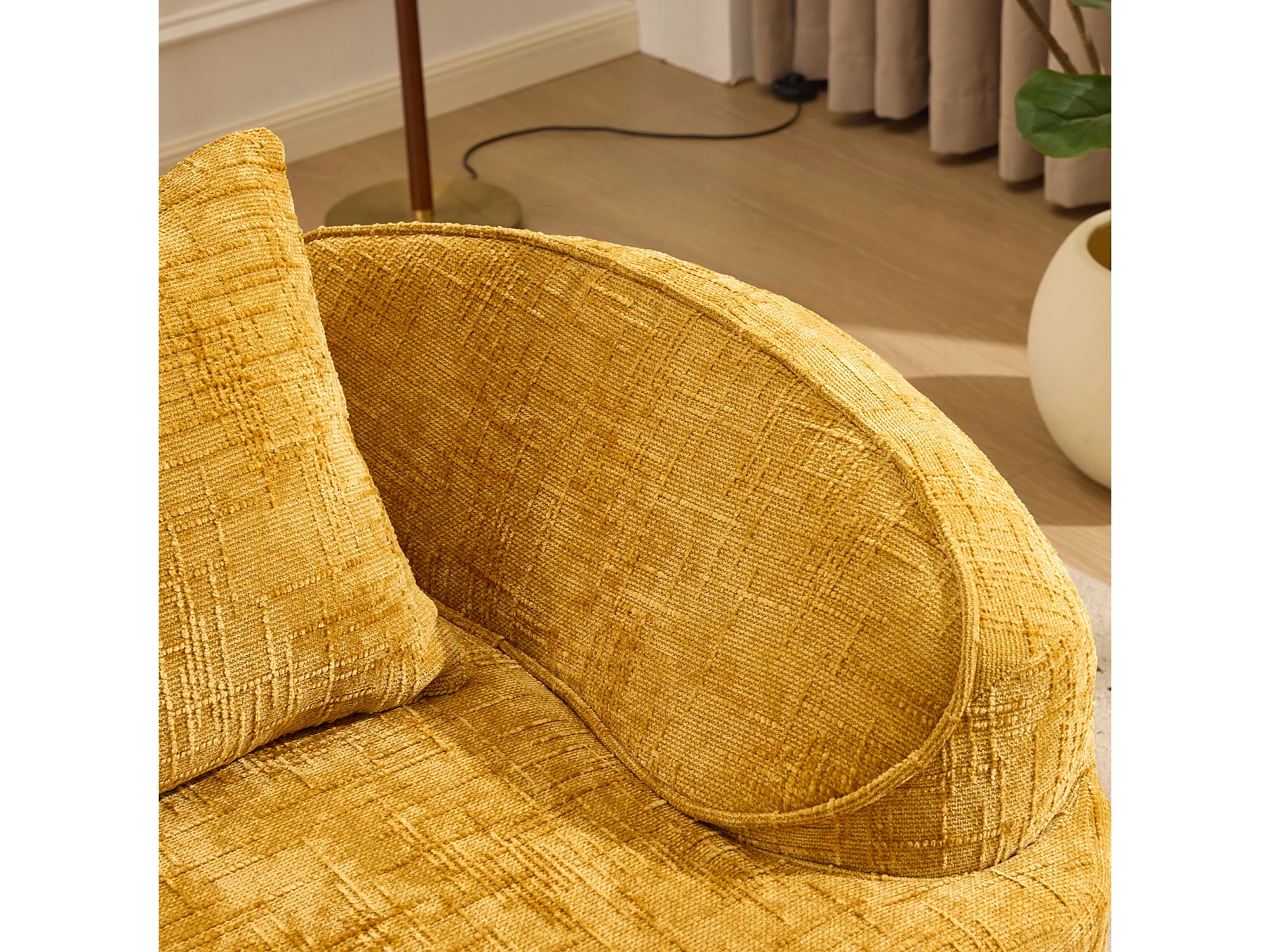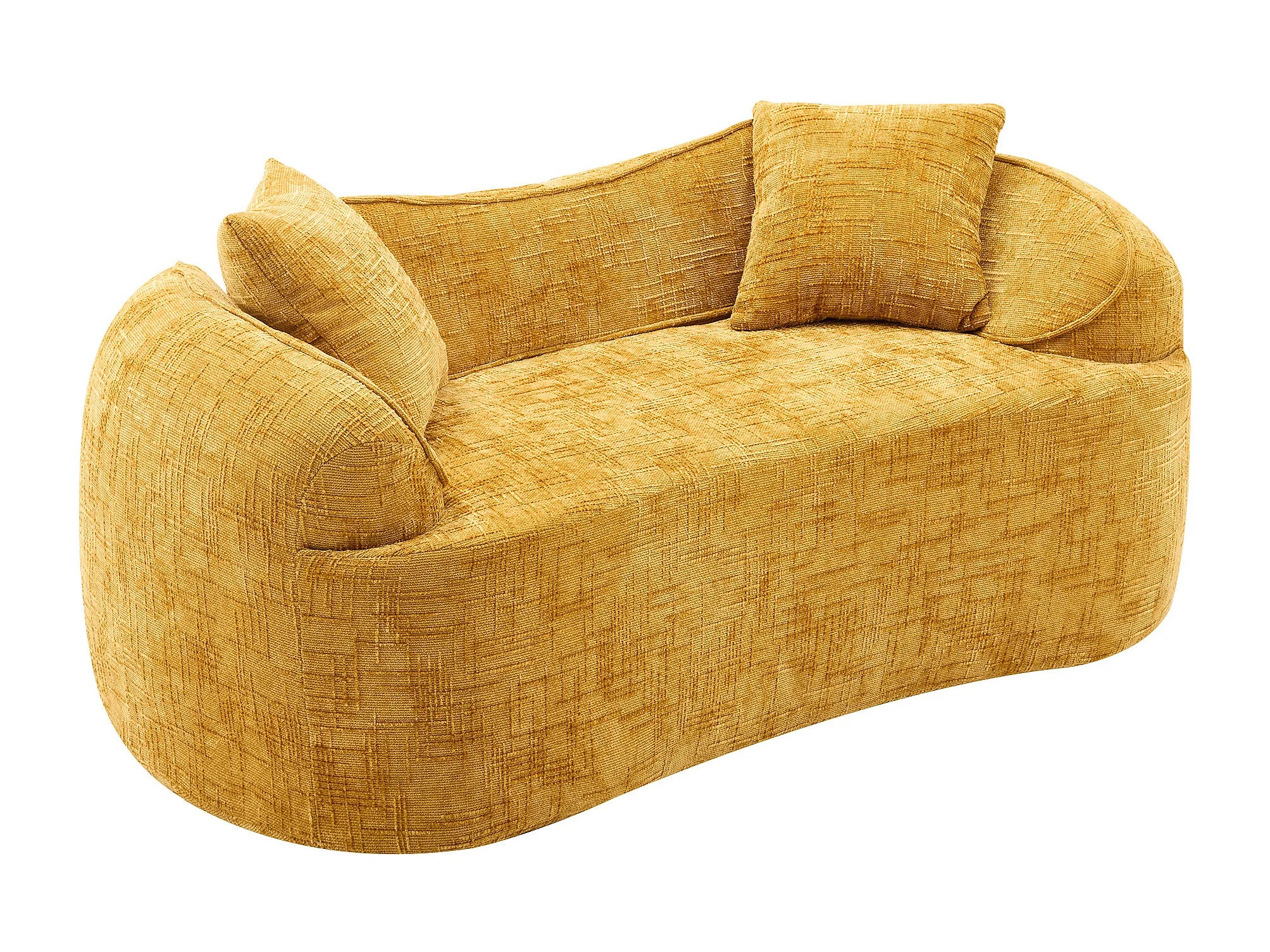 Canapé 2 places incurvé, prêt à l'emploi, soutien ergonomique, mousse et ressorts, jaune