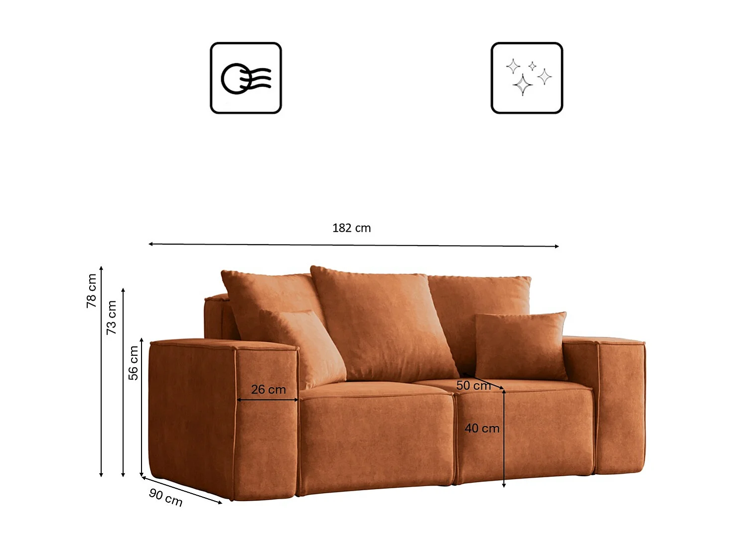 Sofa 2-Sitzer, Komfort Couch BALOO, stoff Schenille, Orange