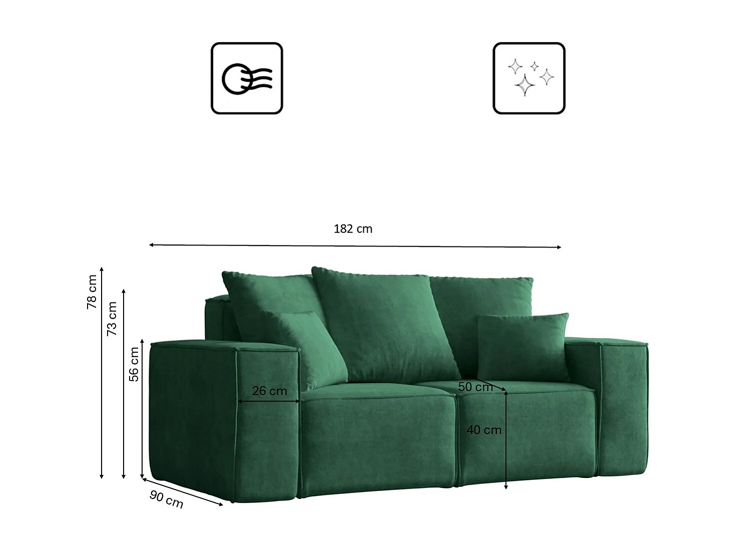 Canapé modulable 2 places en tissu avec coussins vert