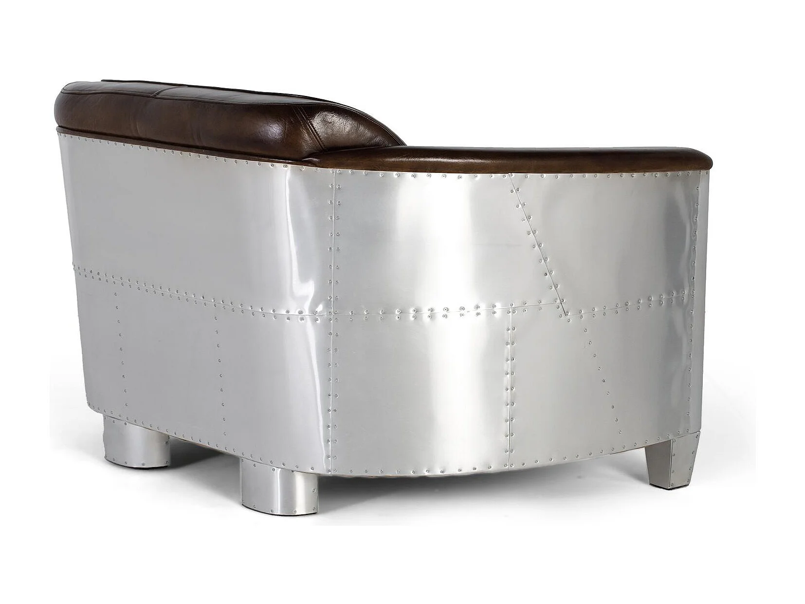 Fauteuil rembourré en cuir avec accoudoirs capitonnés
