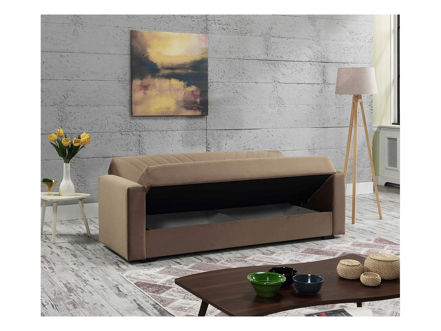Canapé 3 places convertible en Chenille - beige foncé - KONA