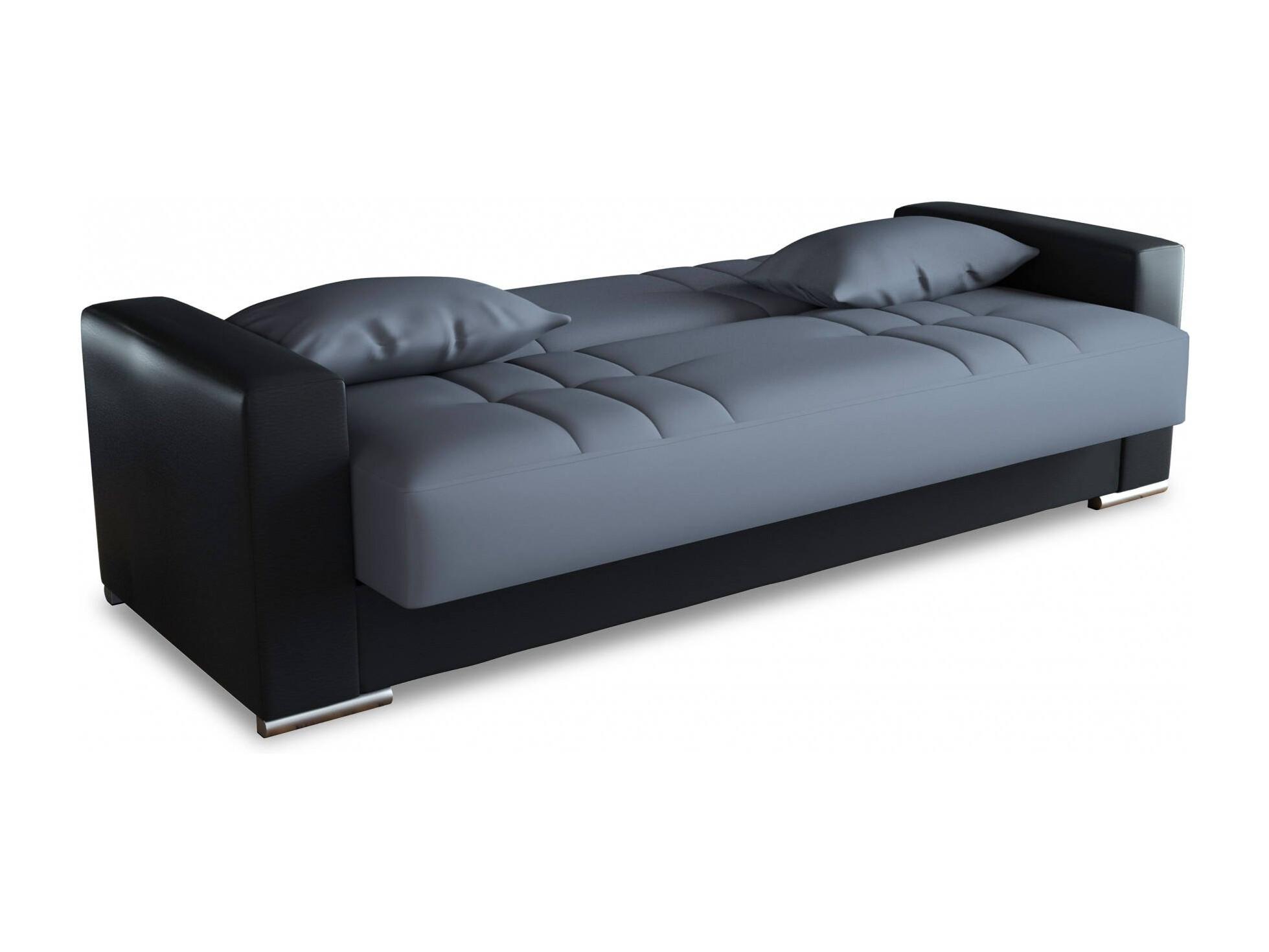 Canapé Dmede, Canapé conteneur 3 places en éco-cuir et tissu, Canapé de salon avec ouverture clic-clac et 2 coussins inclus, 230x96h101 cm, Noir et Gris