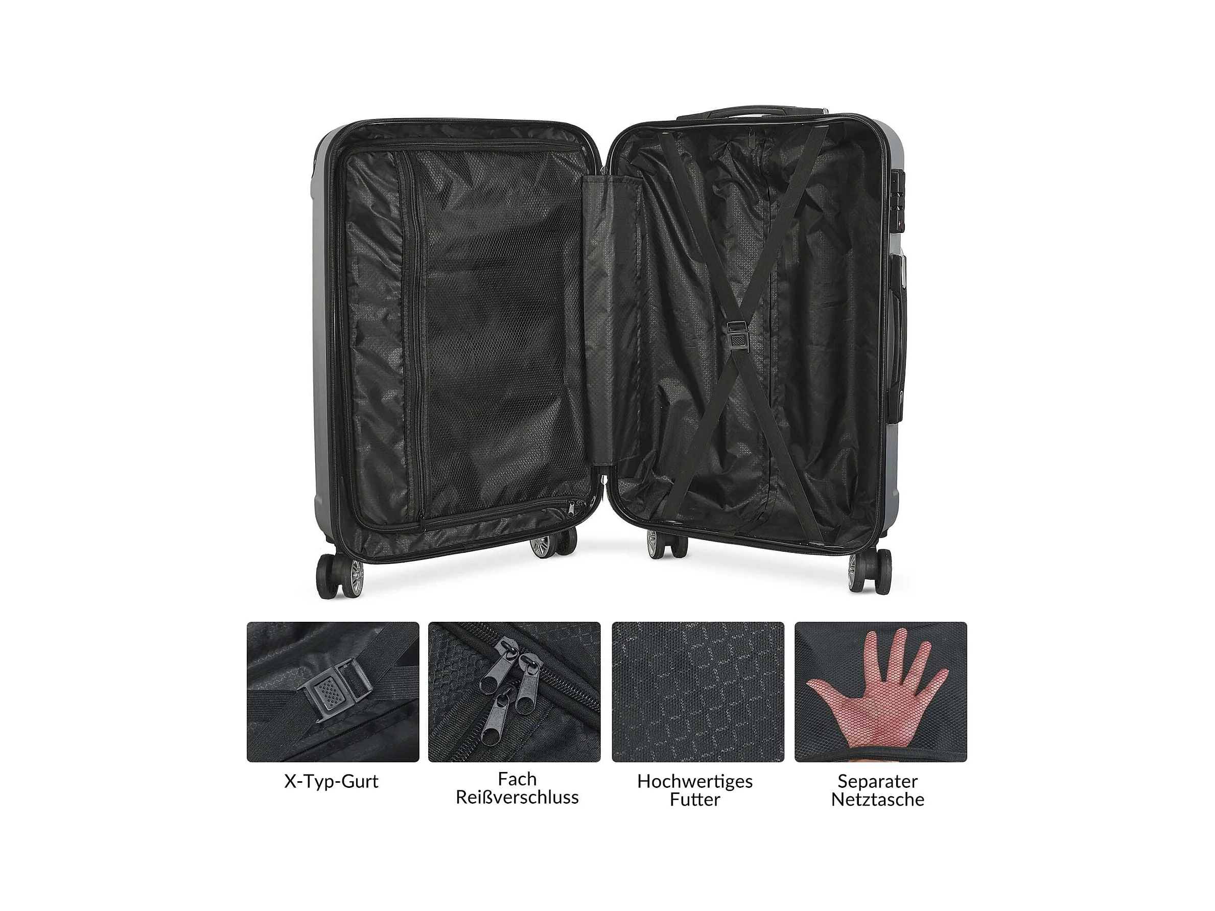 Valise de voyage ABS - 3 pièces, avec serrure à code et roulettes 360° - Noir
