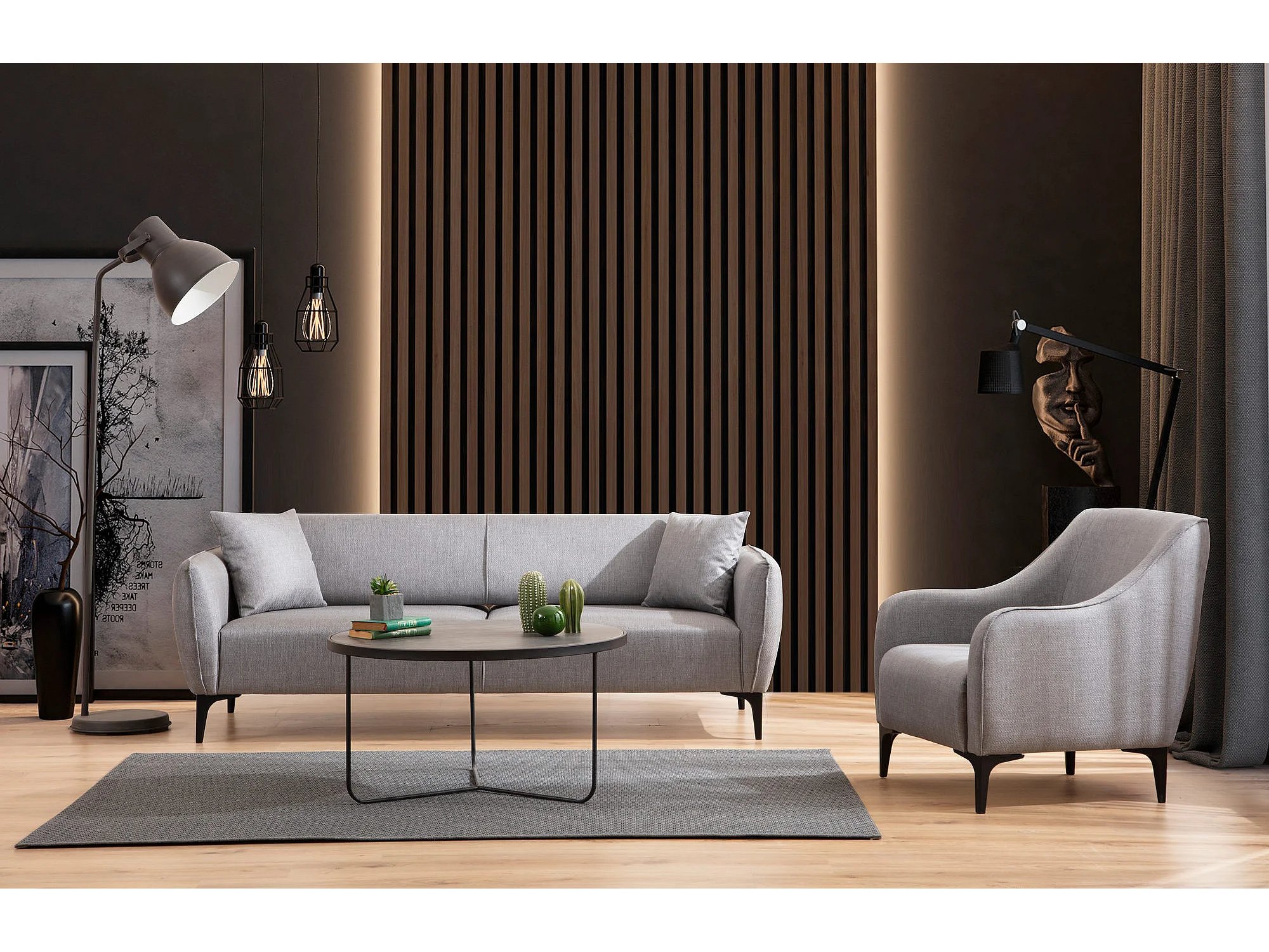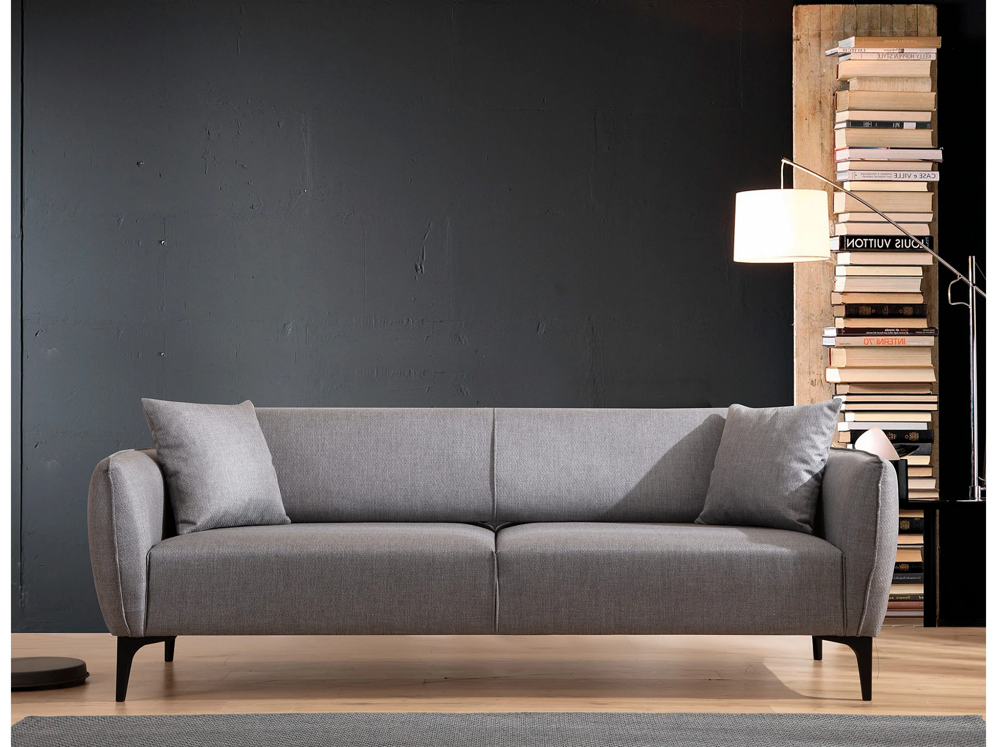 Canapé droit 3 places tissu gris clair Bellano 220cm