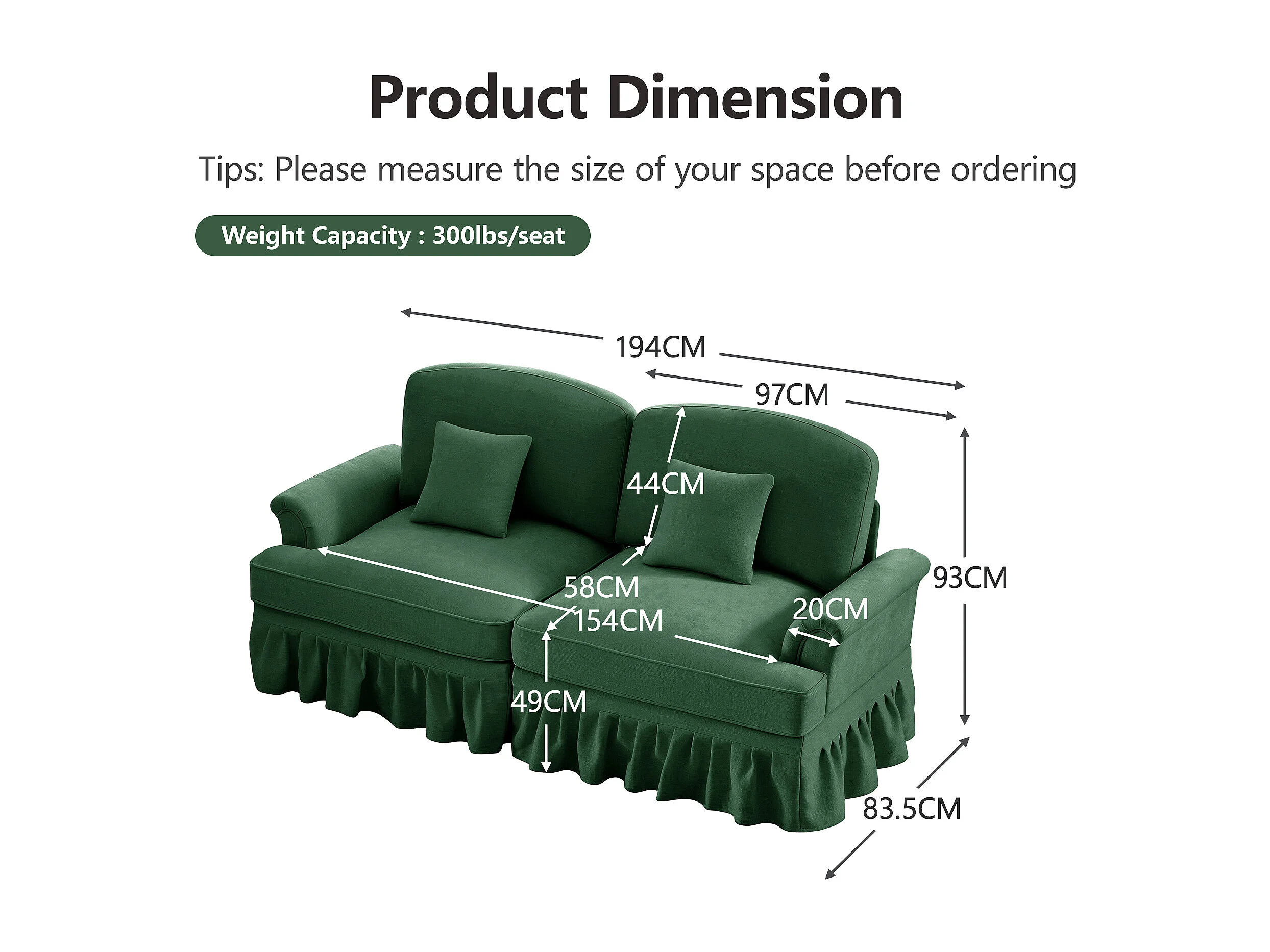 Canapé Siège segmenté Mousse haute densité Modulable Tissu chenille Vert