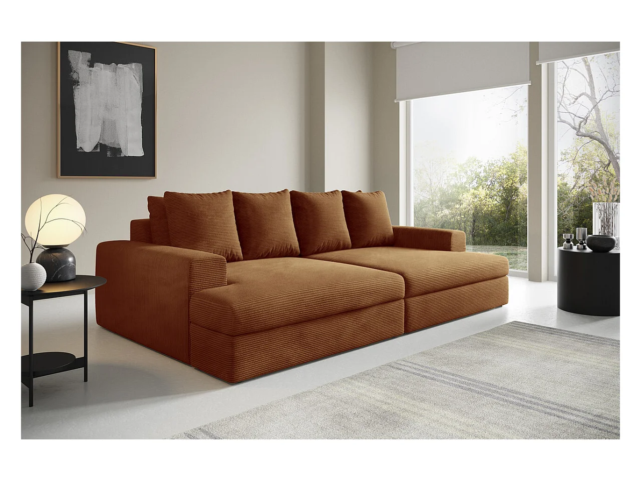 Canapé droit 4 places confort assise profonde en velours côtelé CALDO cuivré