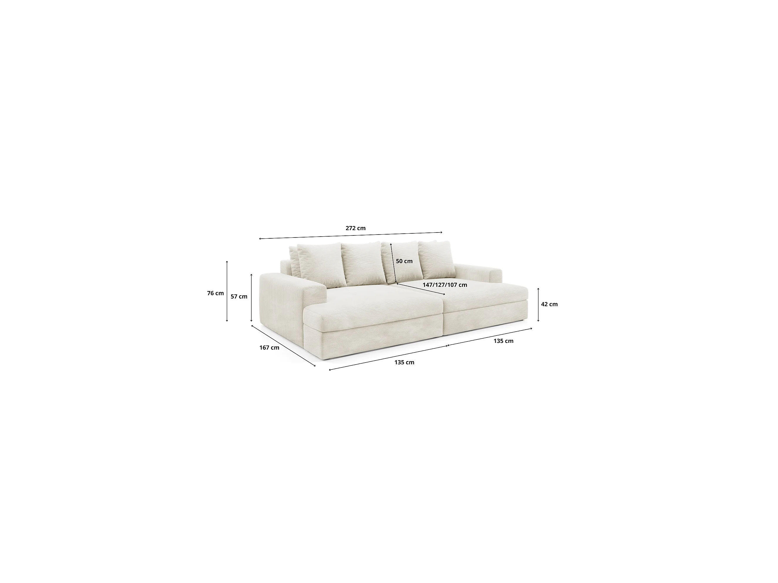 Canapé droit 4 places confort assise profonde en velours côtelé CALDO noir