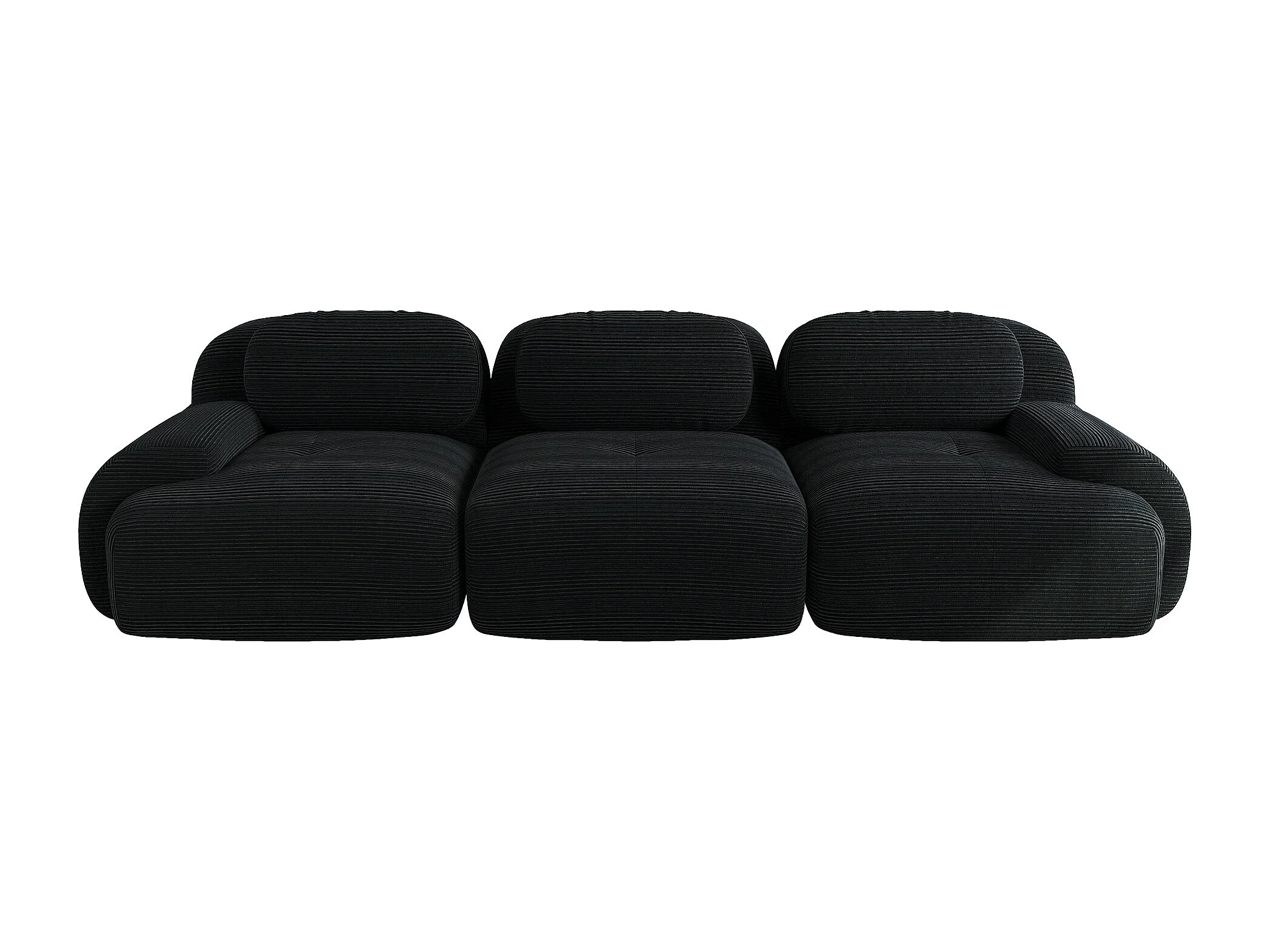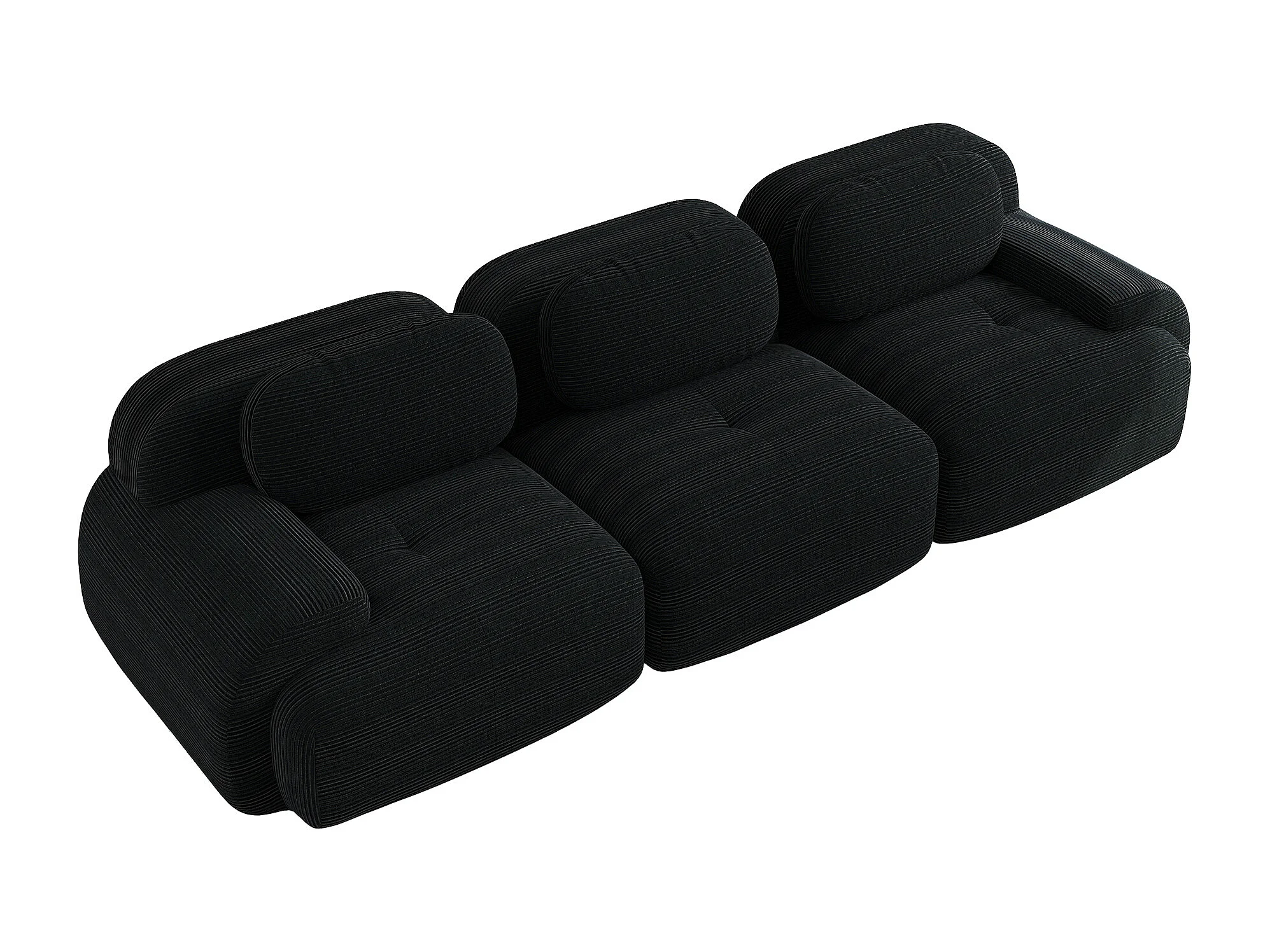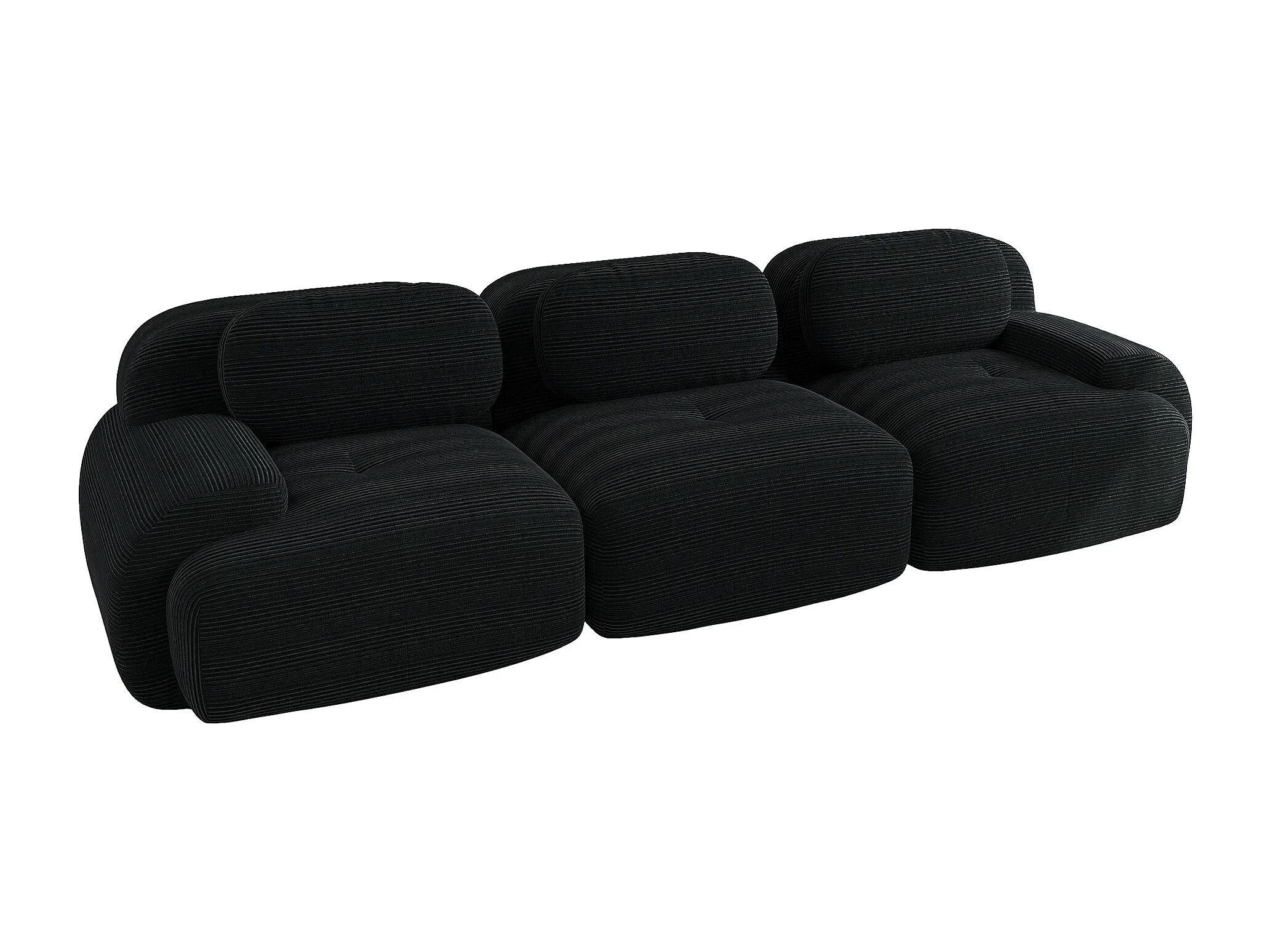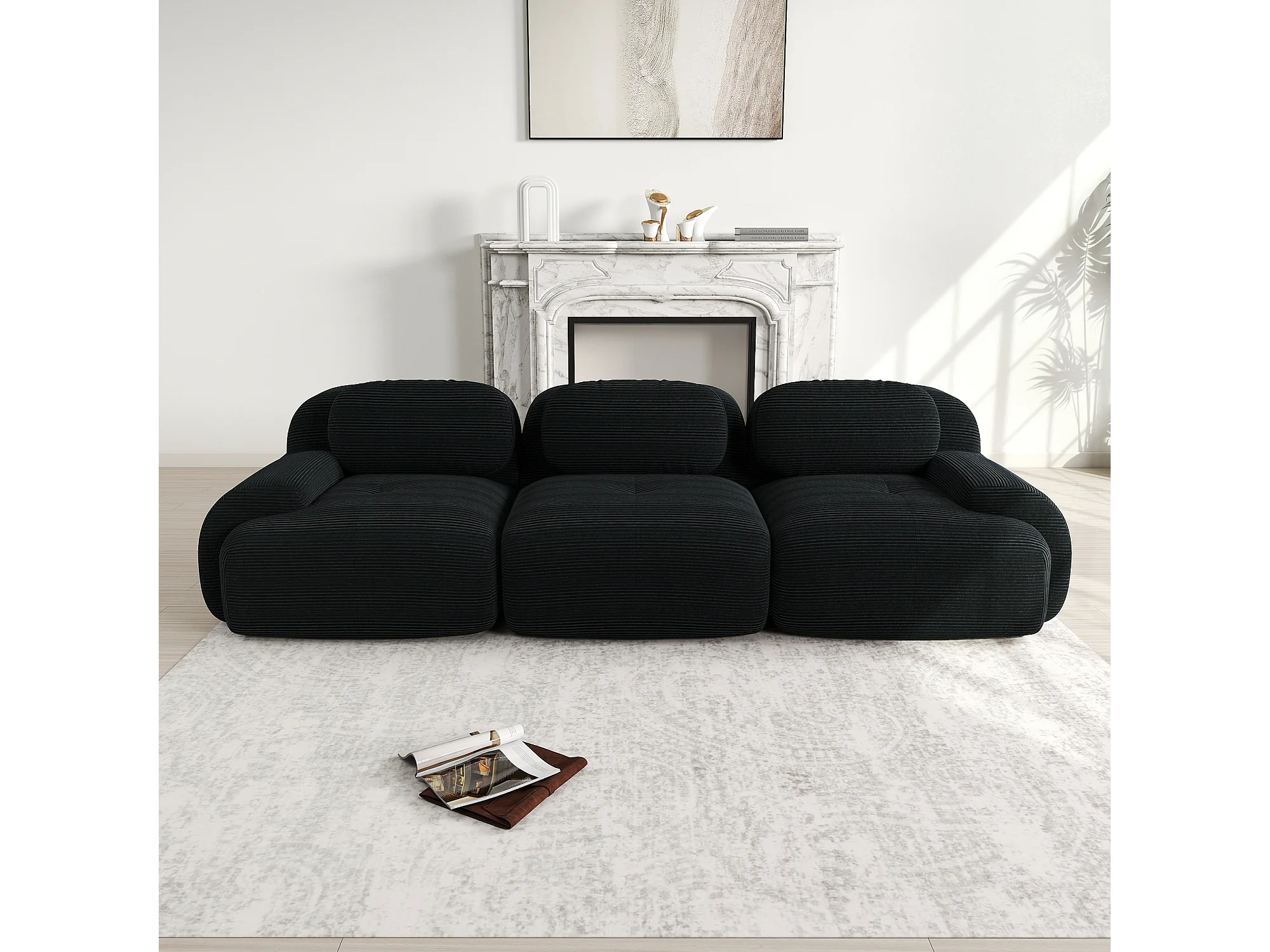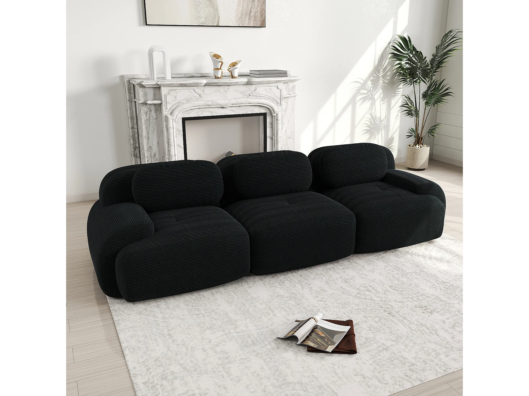 Canapé droit avec accoudoirs incurvés - Canapé 3 places avec dossier et coussins décoratifs - velours côtelé noir