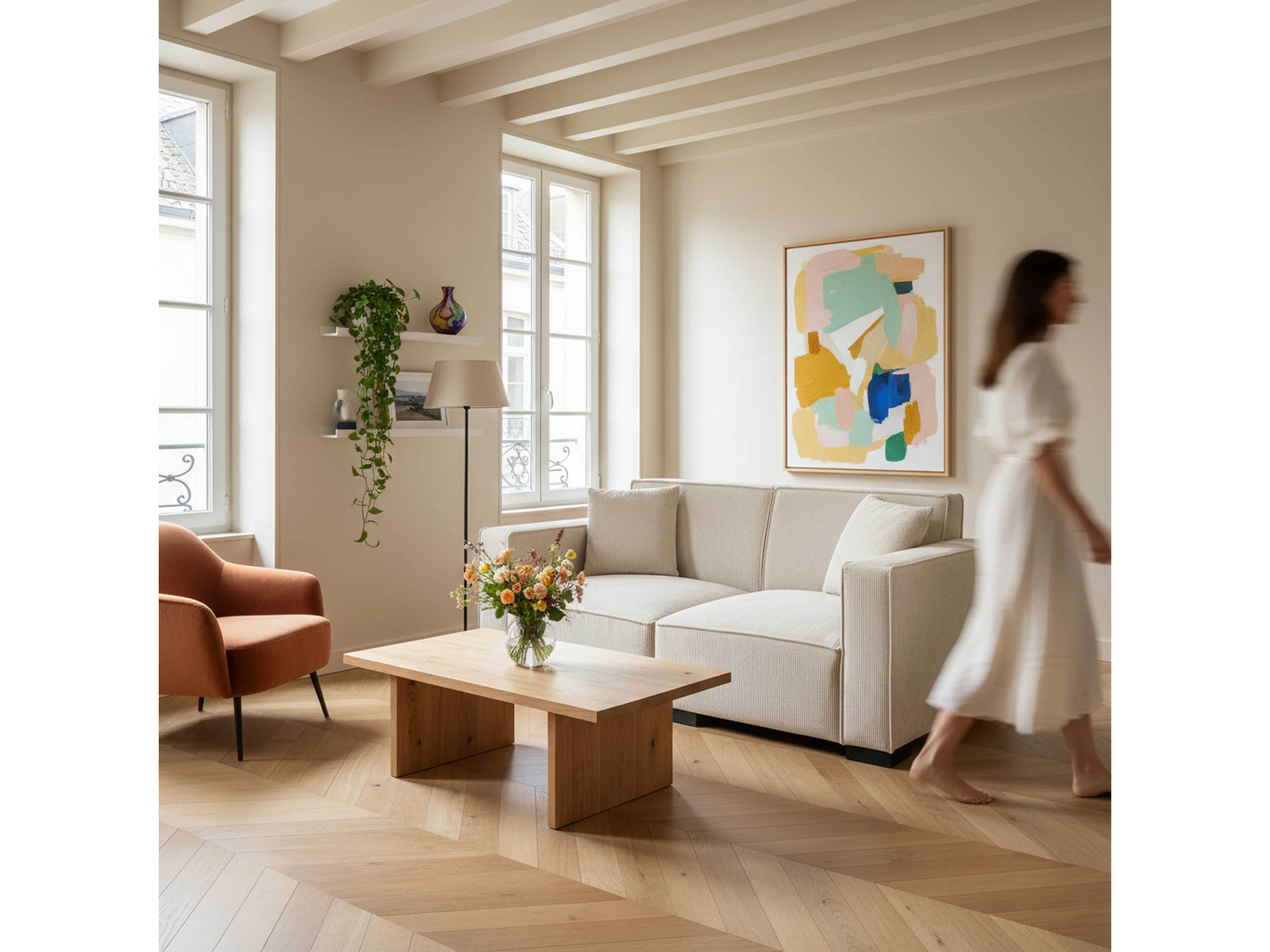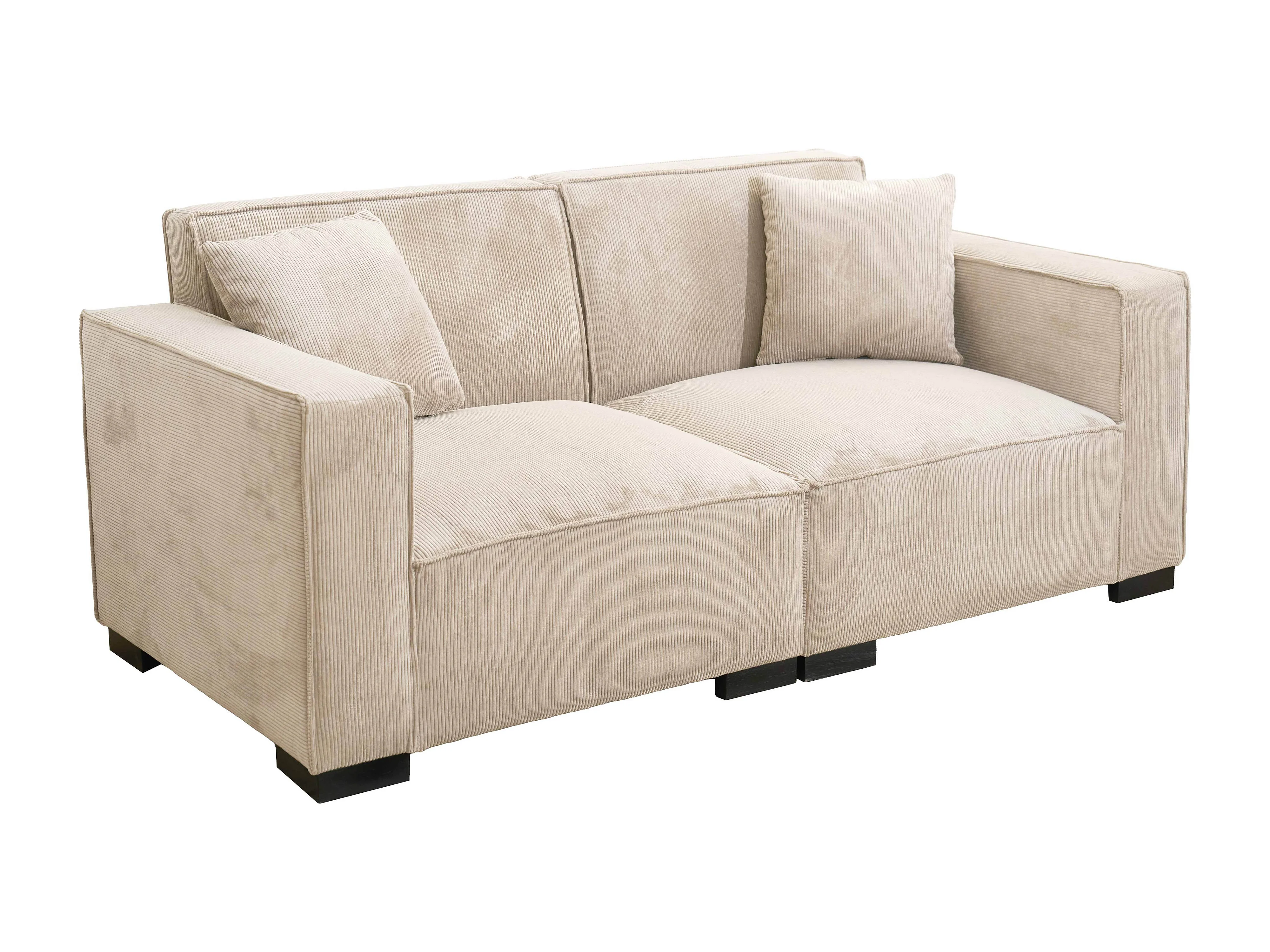 Canapé droit en velours côtelé 2 places écru L 180 cm
