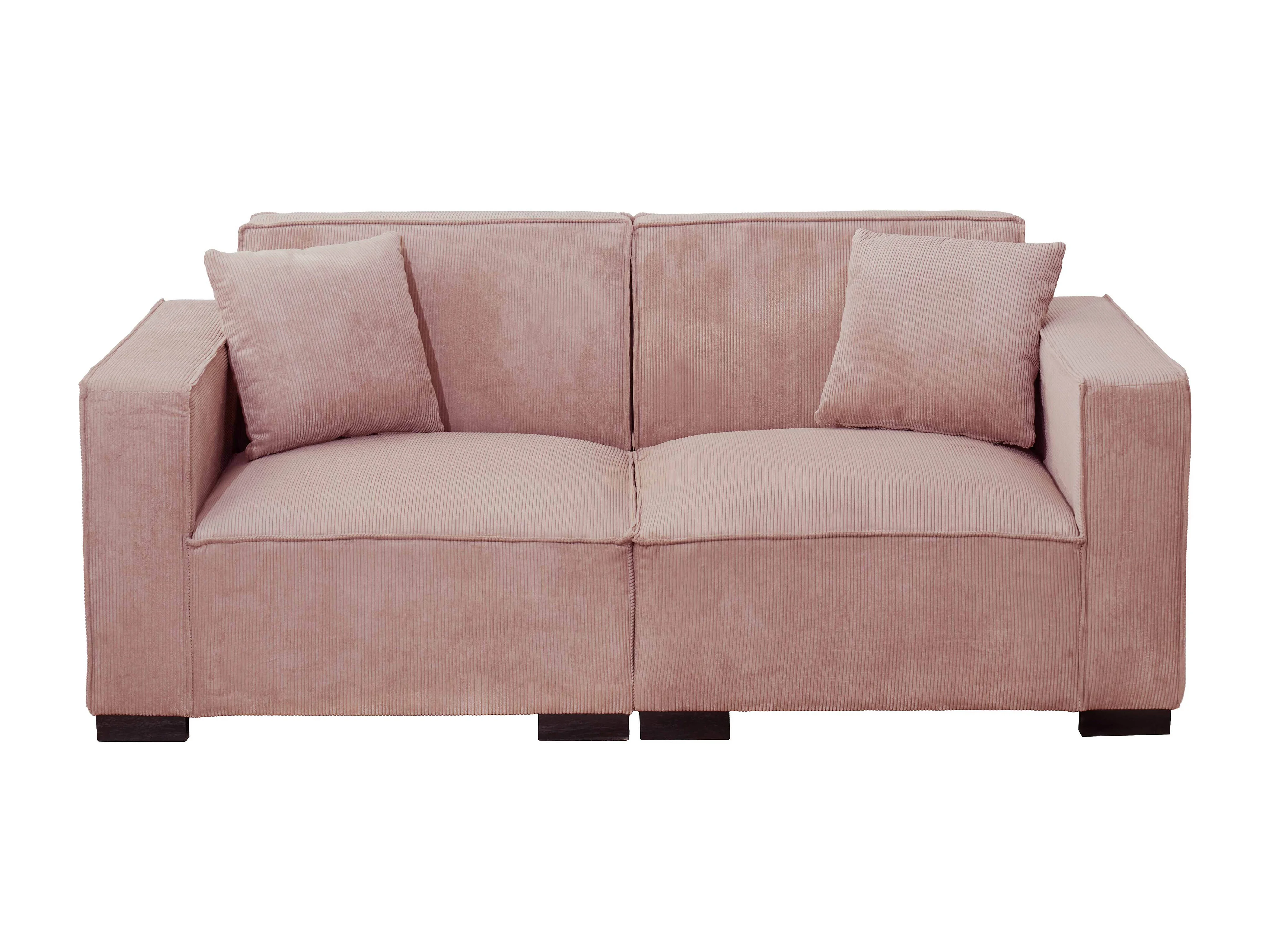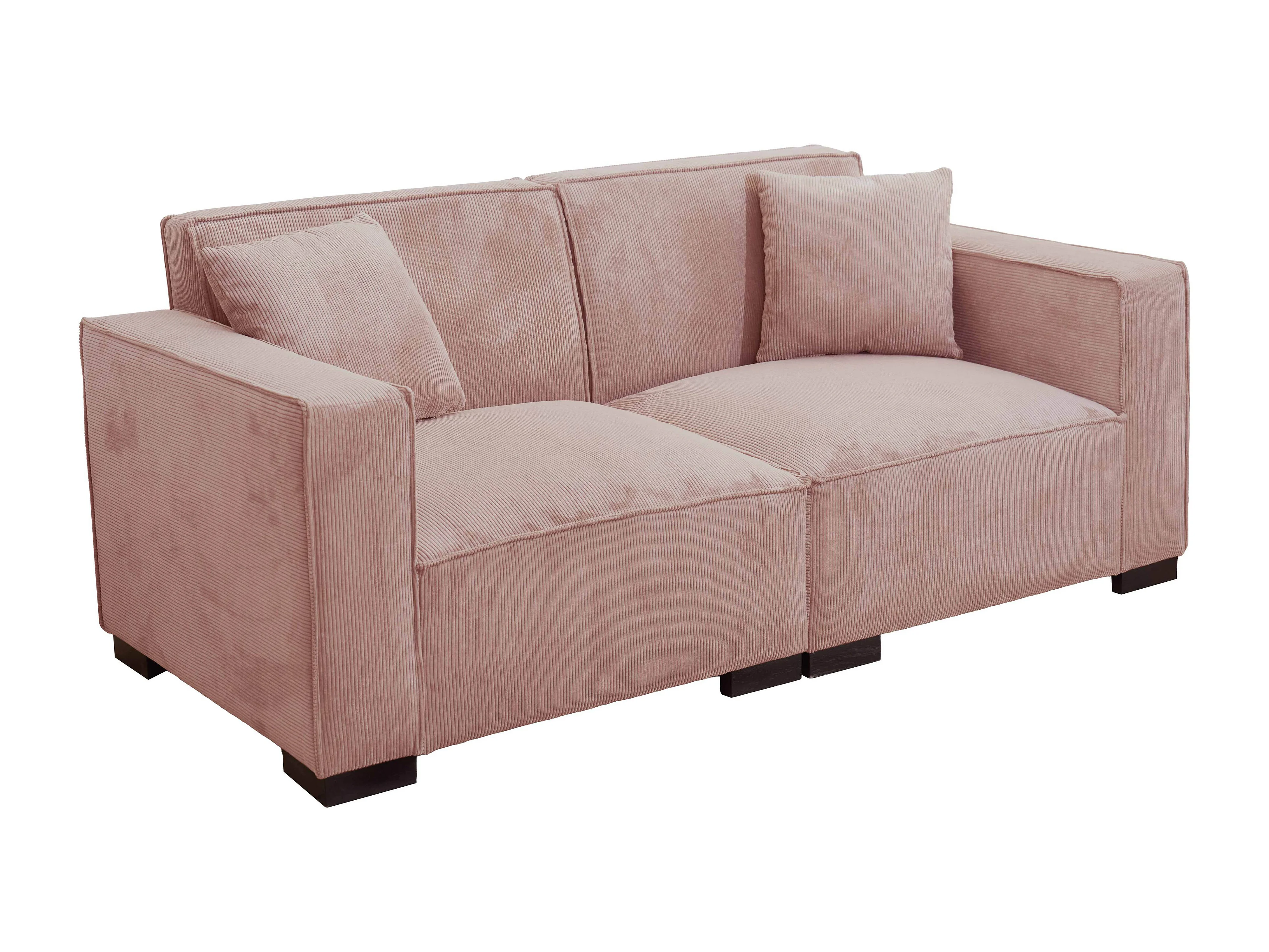 Canapé droit en velours côtelé 2 places rose L 180 cm