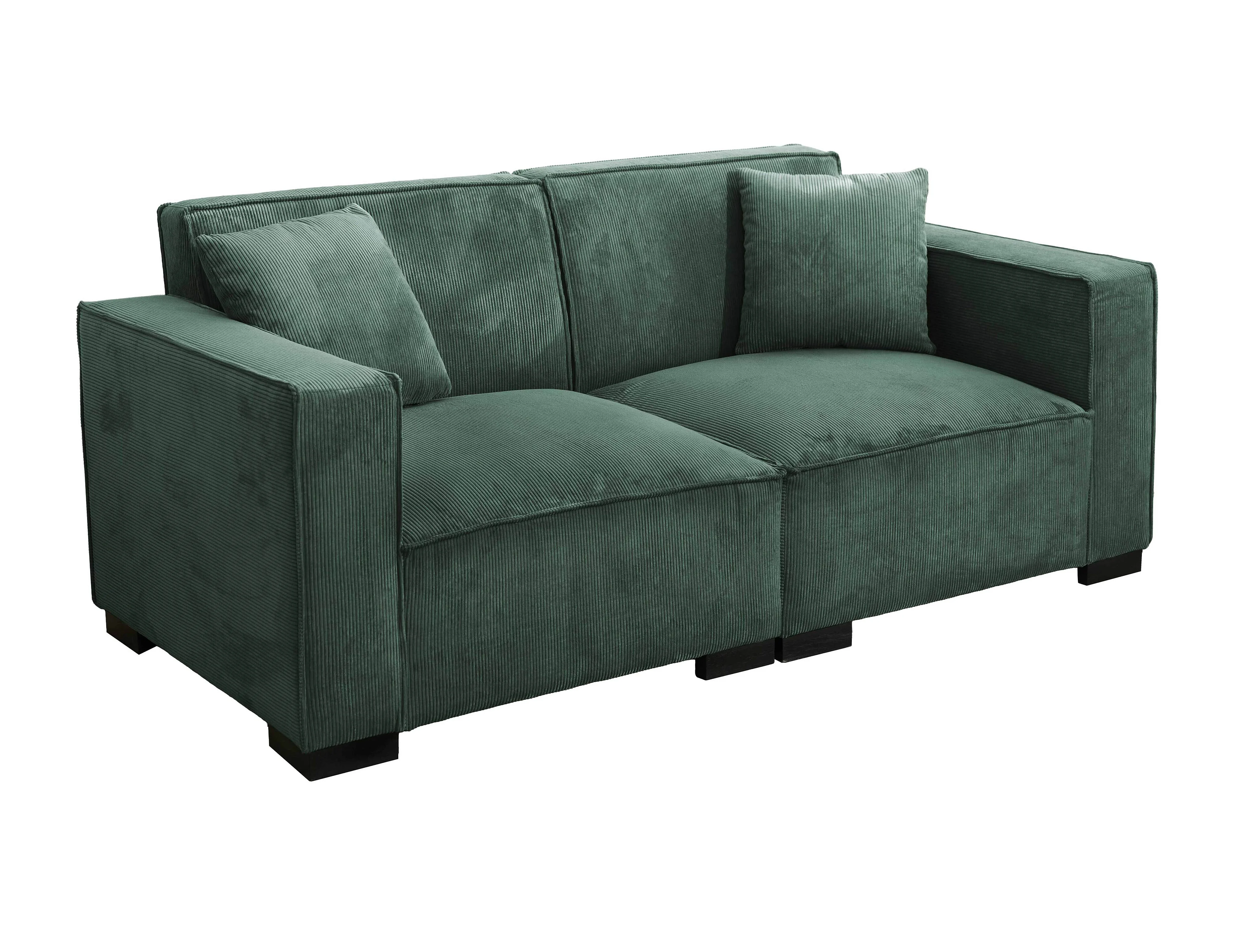 Canapé droit en velours côtelé 2 places vert foncé L 180 cm