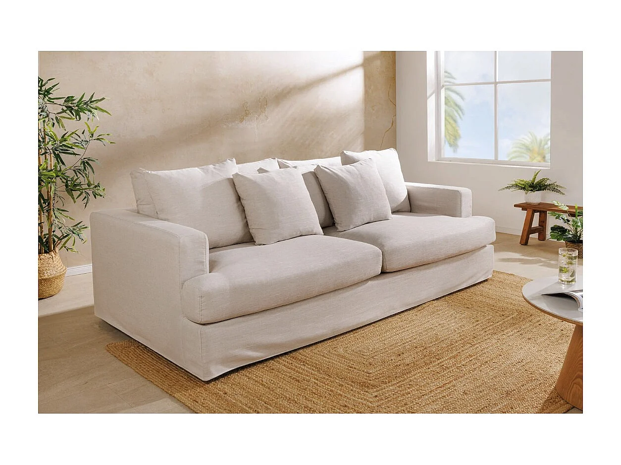 Canapé droit KALIA – Tissu blanc mat – 4 places – Confort généreux contemporain
