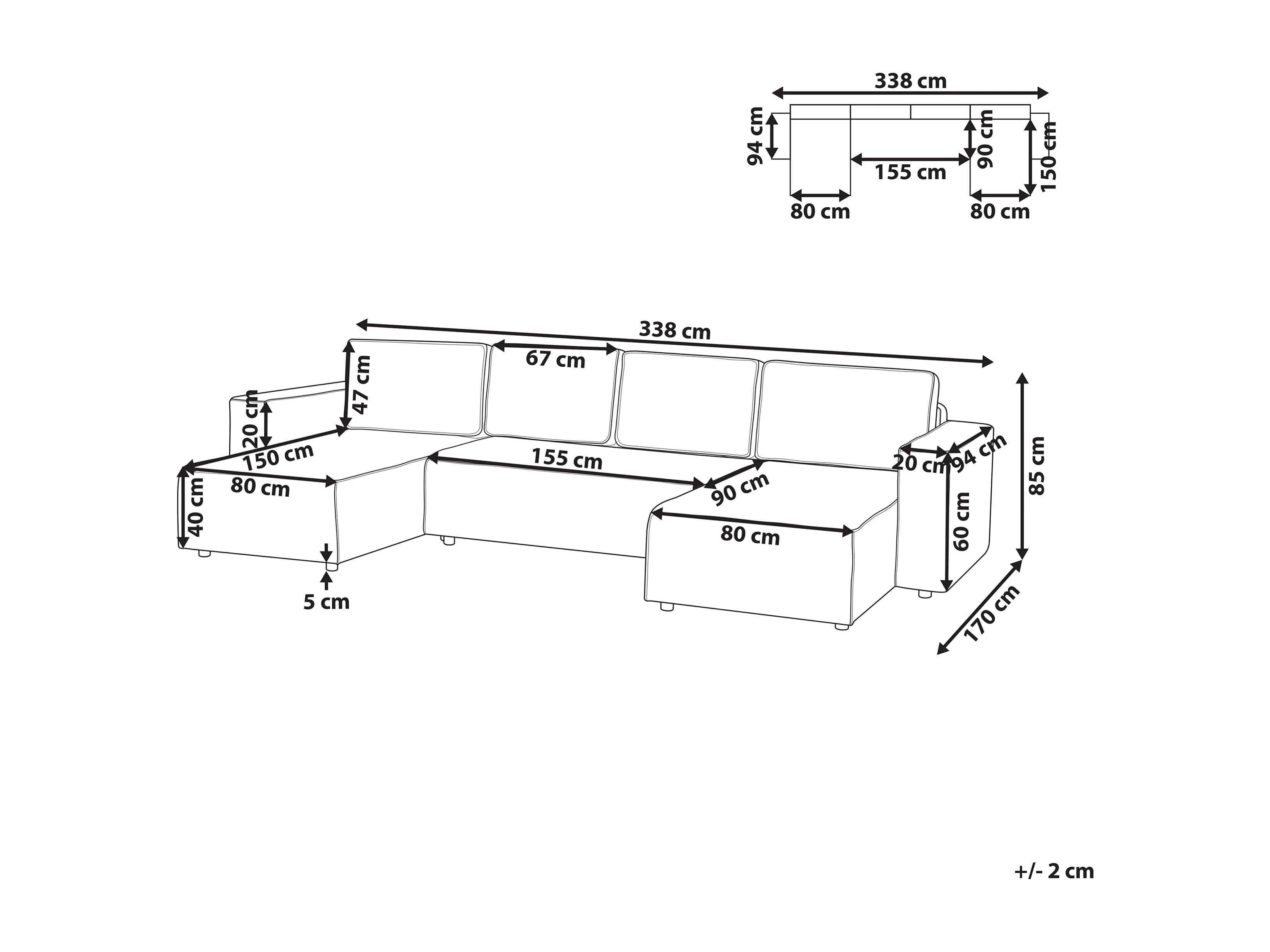 Canapé-lit en forme de U 4 places VATNE Tissu Gris clair avec rangement