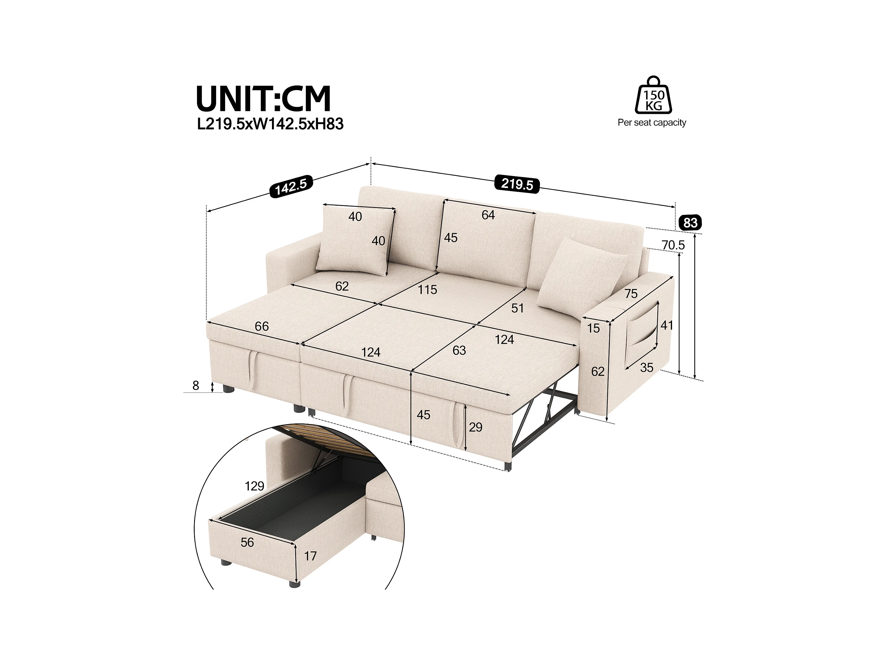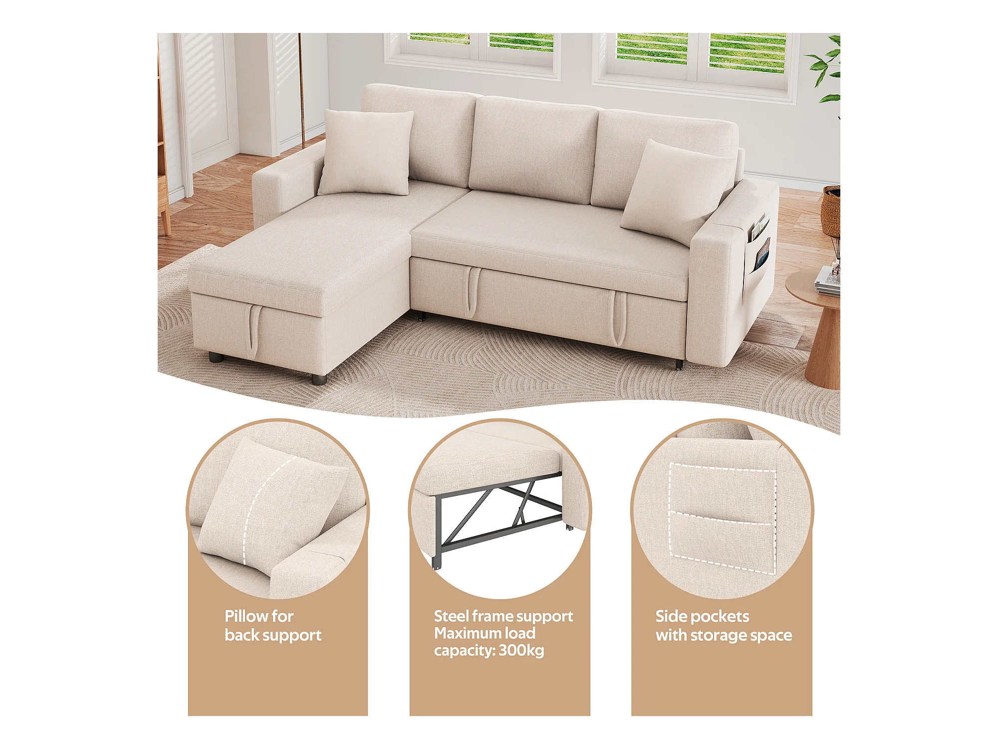 Canapé en L 219.5x142.5x83cm - avec rangement - avec fonction veille - interchangeable gauche et droite - beige