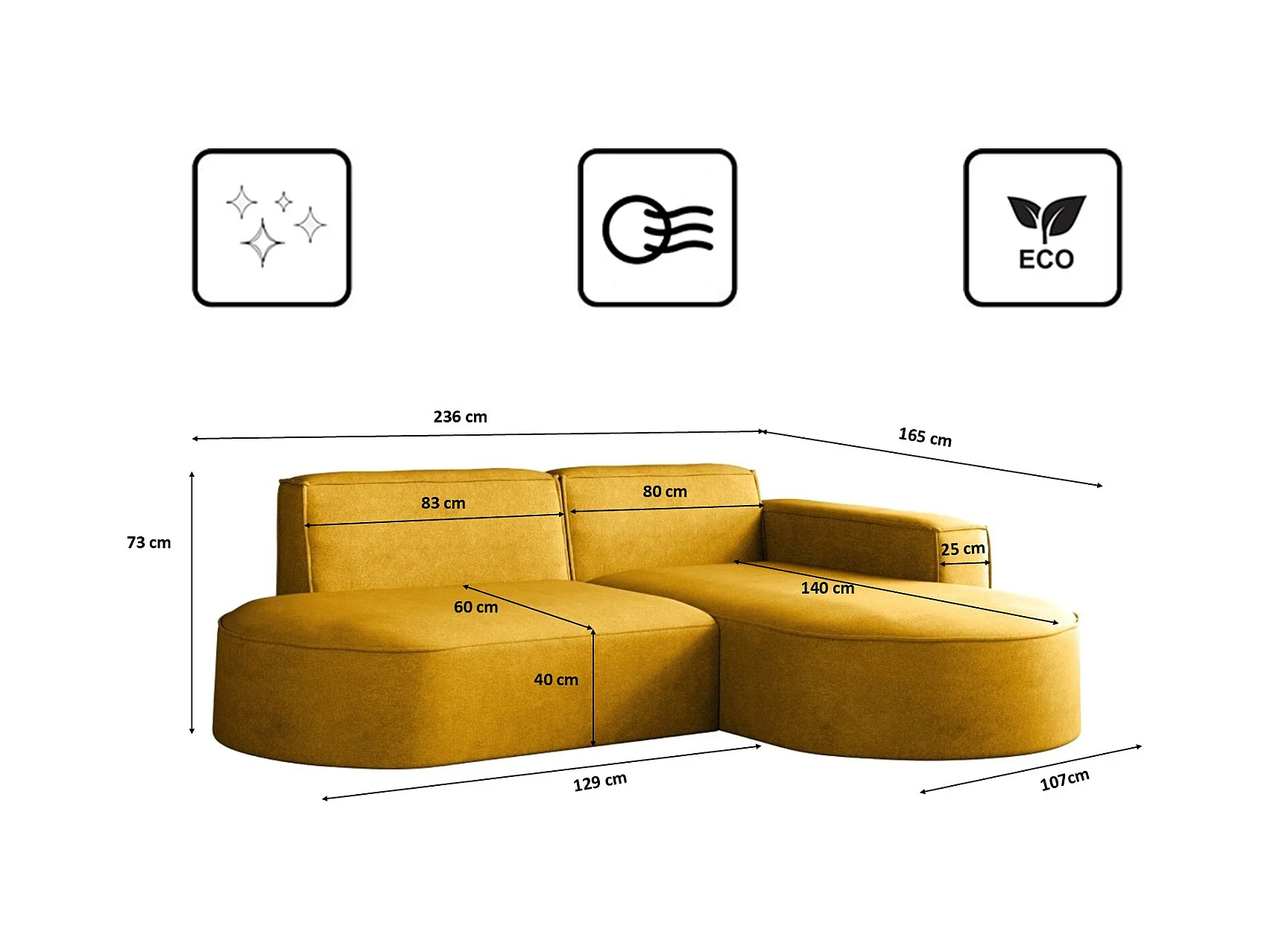 Canapé d'angle droit en tissu chenille - moutarde - HOKU