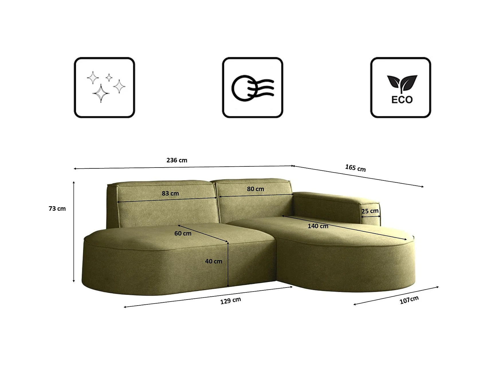 Canapé d'angle en L PULA, tissu Perfect Harmony, vert, droit