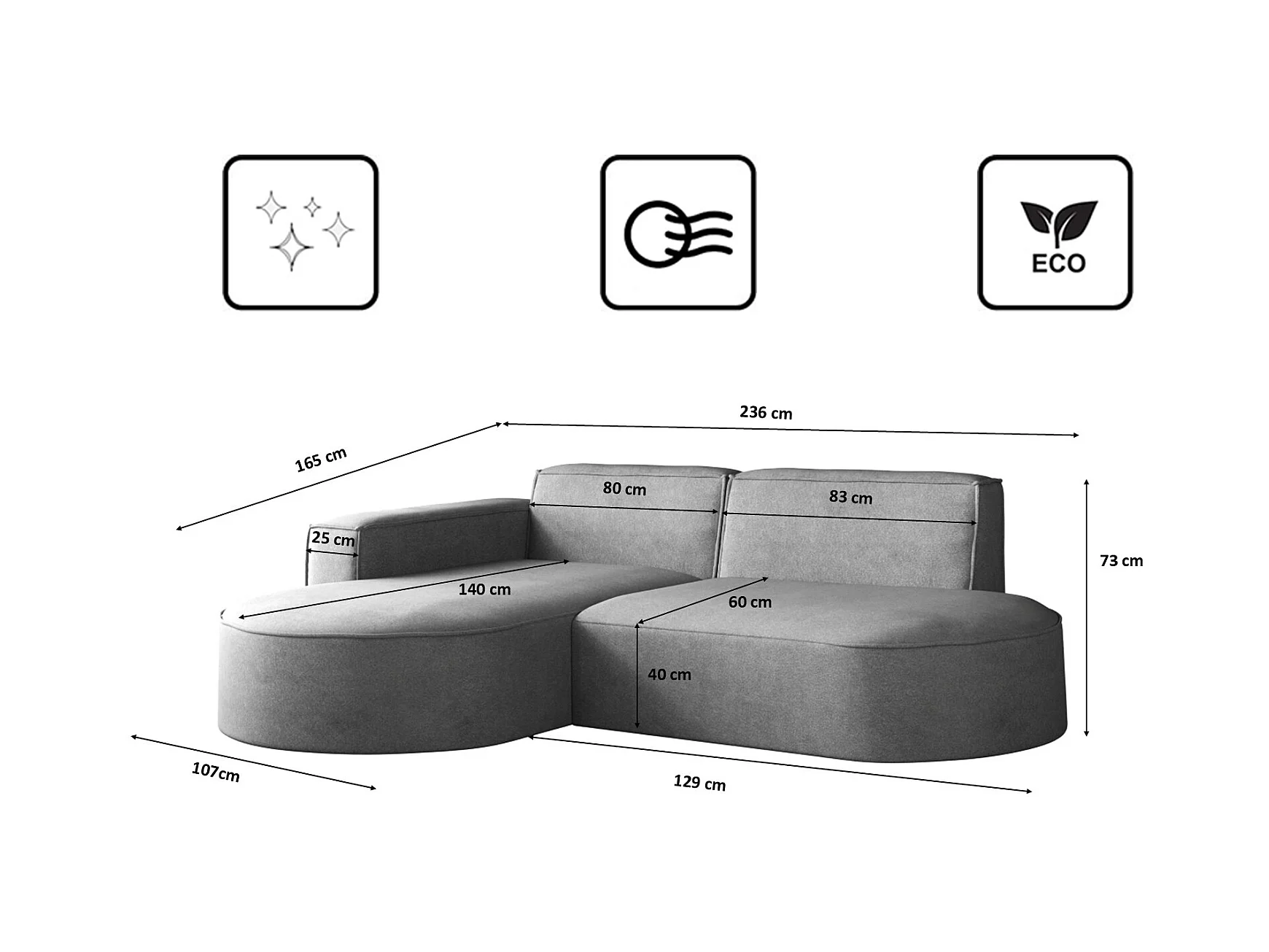 Canapé d'angle en L PULA, tissu Perfect Harmony, gris, gauche