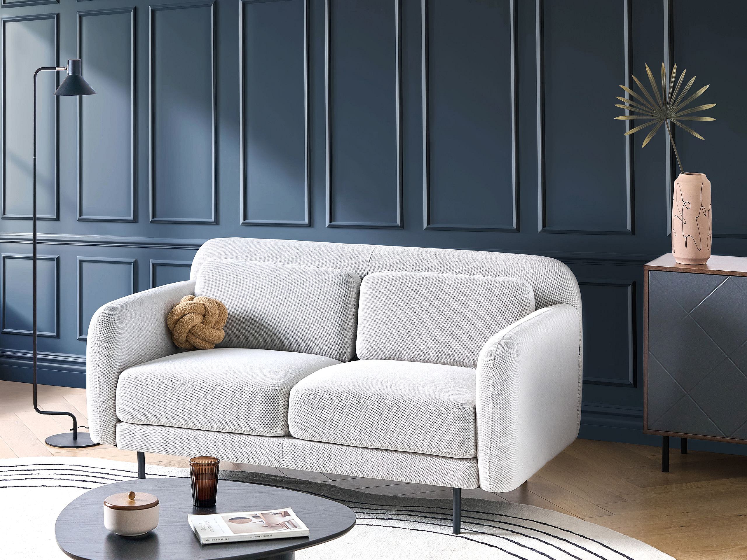 Canapé 2 places LILAND Tissu Blanc cassé