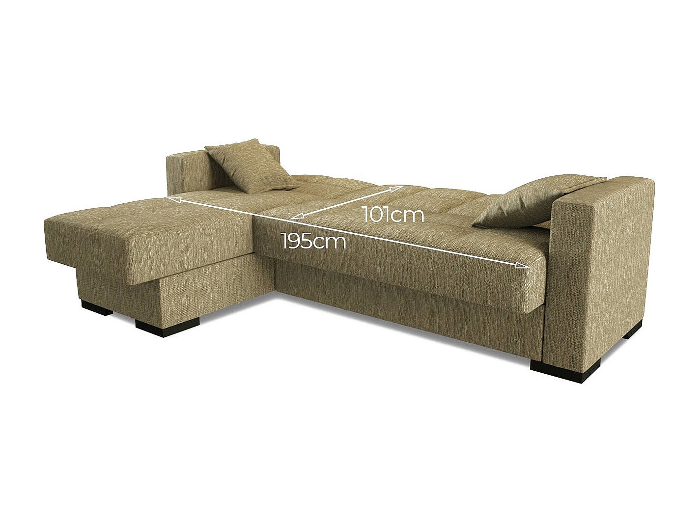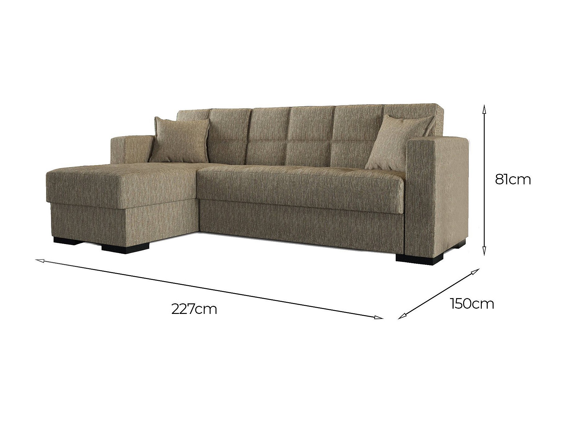 Canapé Ddajca, Canapé d'angle avec péninsule réversible, Canapé de rangement pour le salon avec chaiselongue et 2 coussins, 230x150h81 cm, Beige