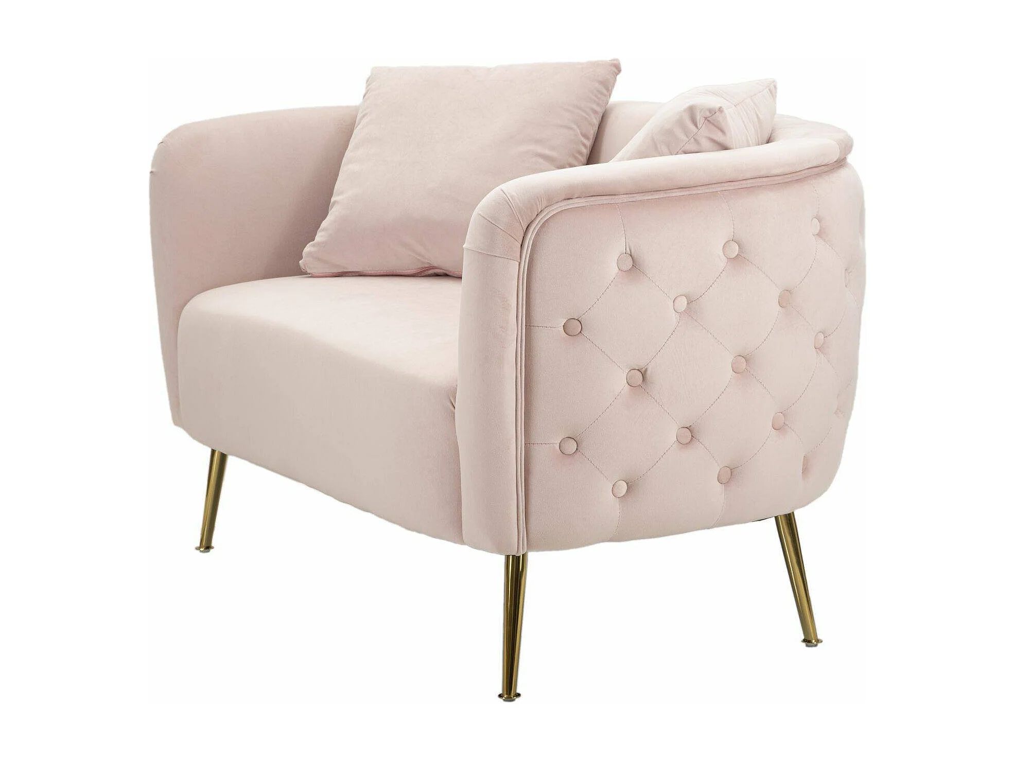 Canapé fixe 2 places Cappa, tissu rembourré avec 2 coussins inclus, 74x127x71h cm rose