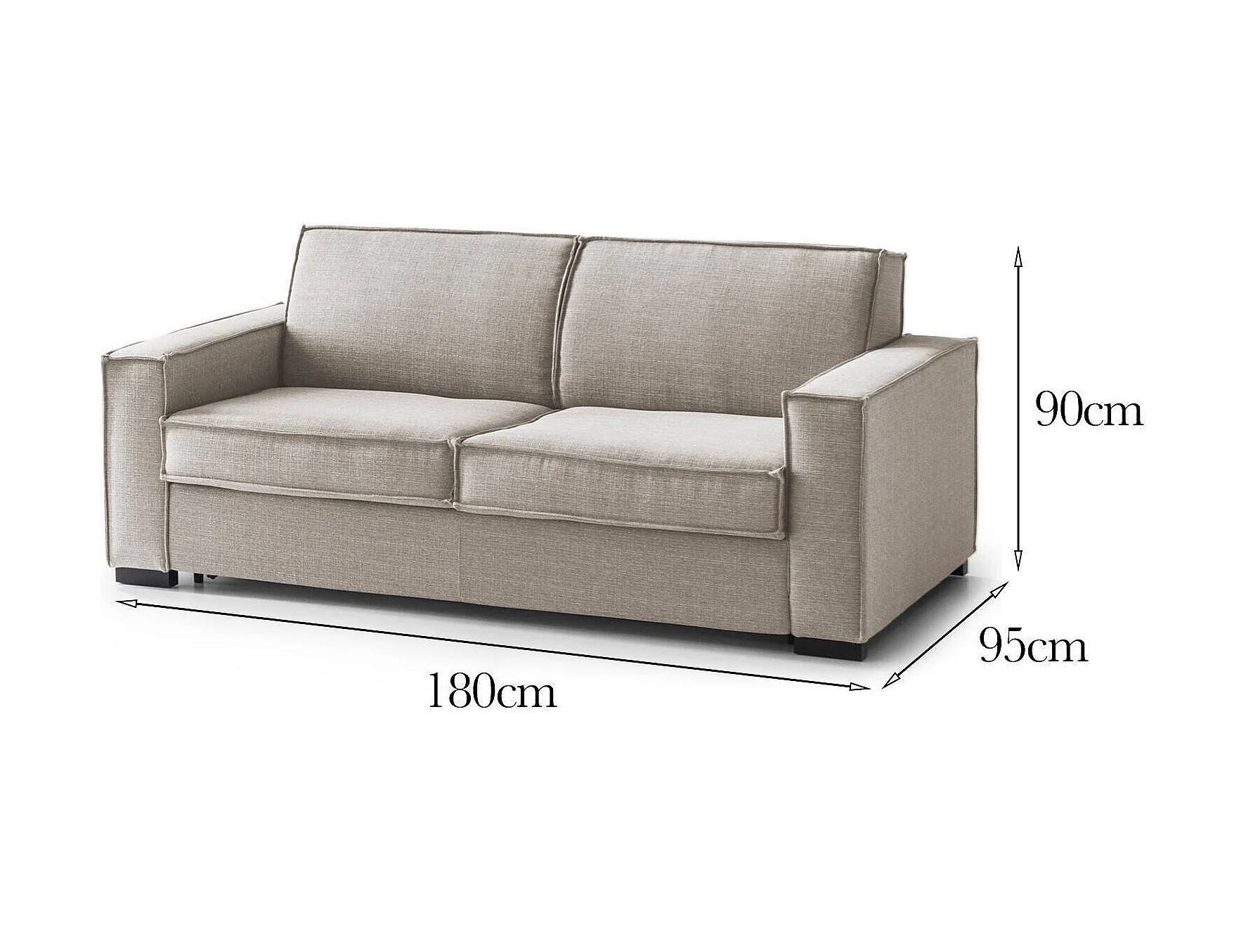 Canapé fixe Daalder, canapé 2 places, 100% Made in Italy, Canapé de salon en tissu, avec accoudoirs standards, 180x95h90 cm, Taupe