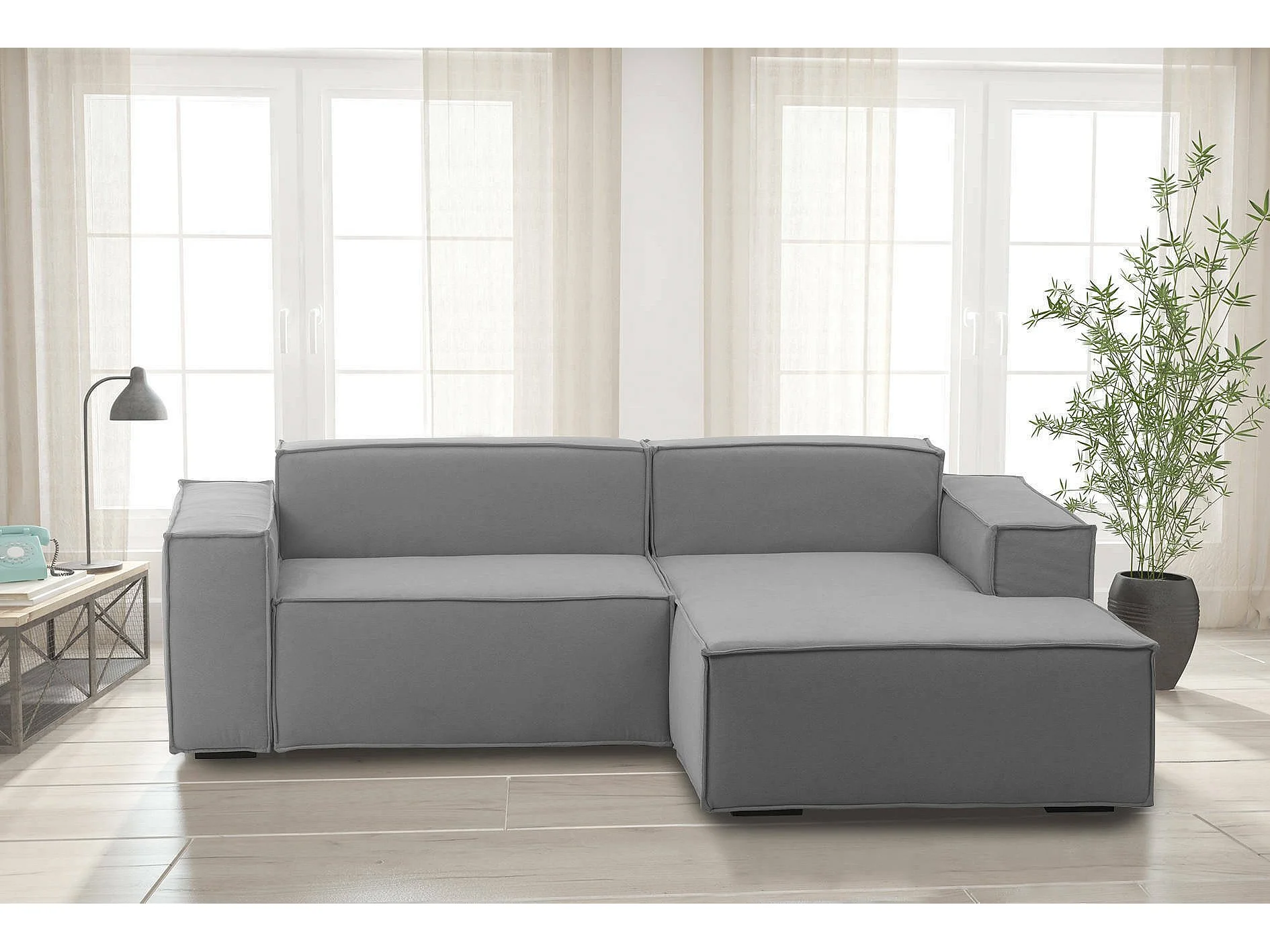 Canapé fixe Dlorenz, canapé modulable 2 places avec péninsule droite, 100% Made in Italy, Canapé moderne en tissu, 220x170h70 cm, Gris