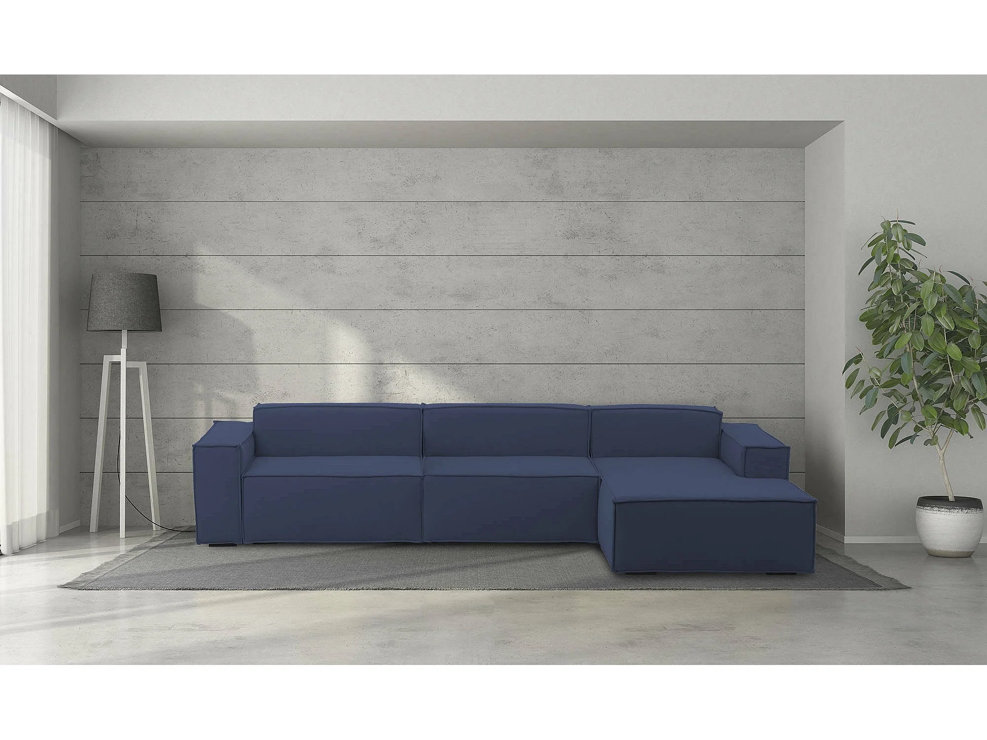 Canapé fixe Dmaiol, canapé modulable 4 places avec péninsule droite, 100% Made in Italy, Canapé moderne en tissu, 340x170h70 cm, Bleu