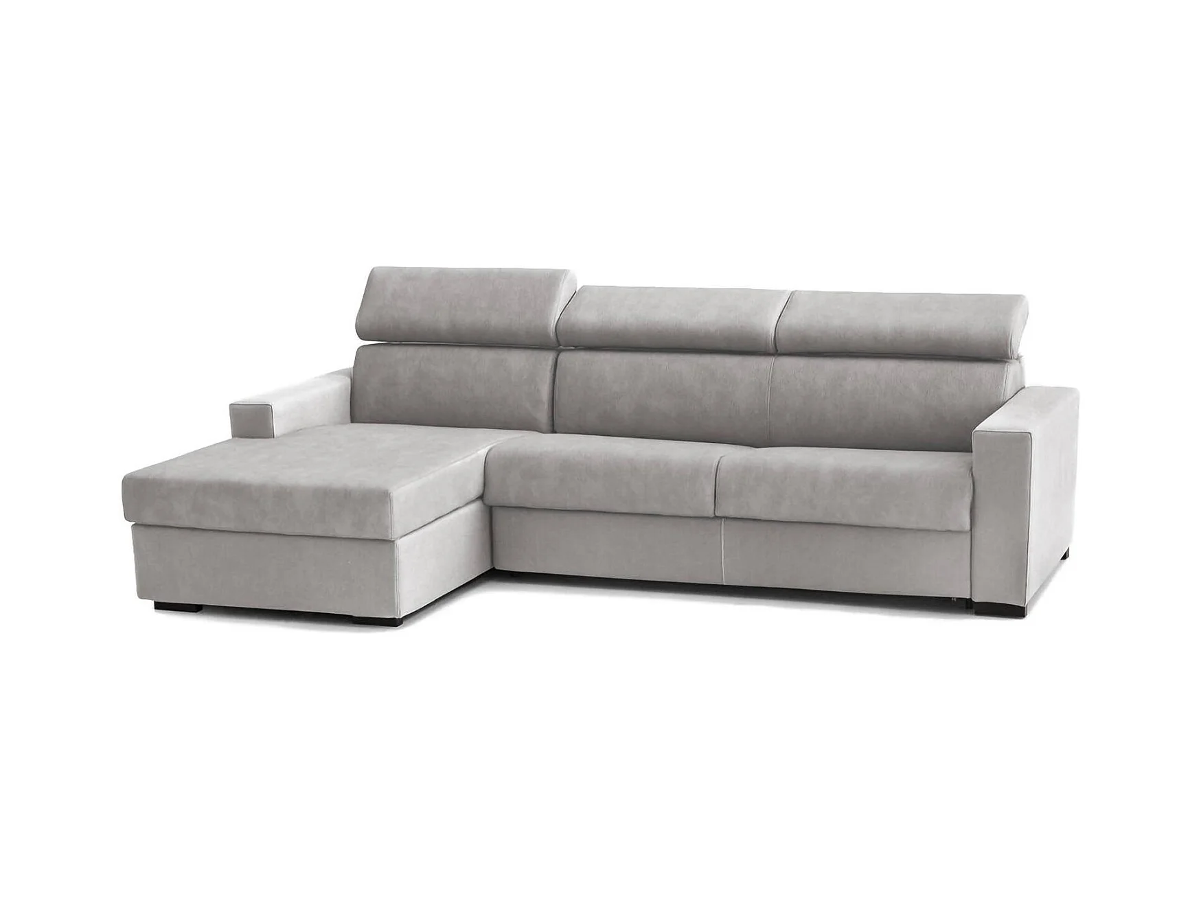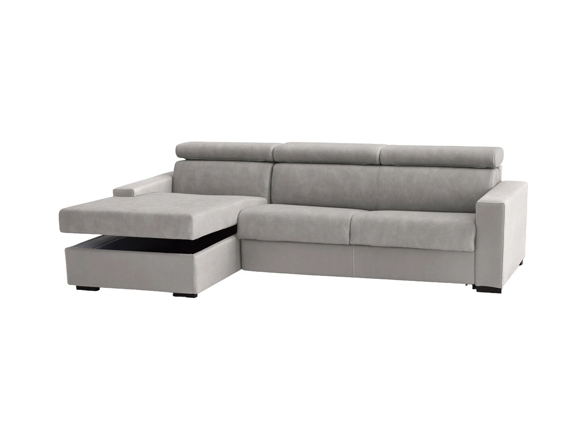 Adelina slaapbank, hoekbank, 100% Made in Italy, bank met draaibare opening, opbergschiereiland links, met standaard armleuningen, 280x95h90 cm, grijs