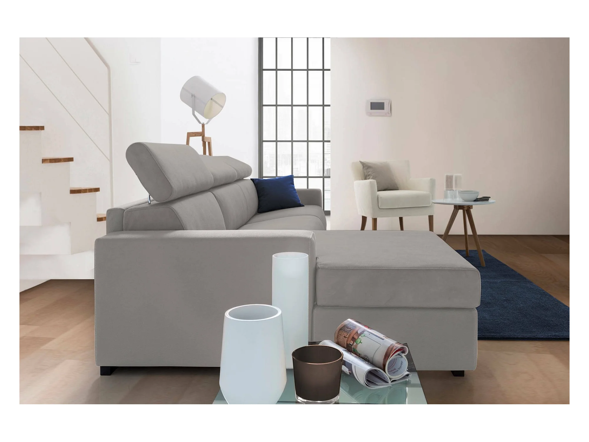 Canapé-lit Alceste, Canapé d'angle, 100% Made in Italy, Canapé à ouverture pivotante, avec péninsule de rangement droite, avec accoudoirs fins, 260x95h85 cm, Gris
