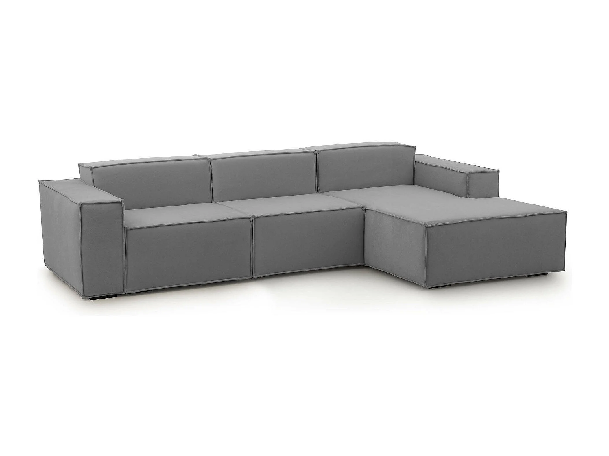 Canapé fixe Giovanna, canapé modulable 3 places avec péninsule droite, 100% Made in Italy, Canapé moderne en tissu, 300x170h70 cm, Gris
