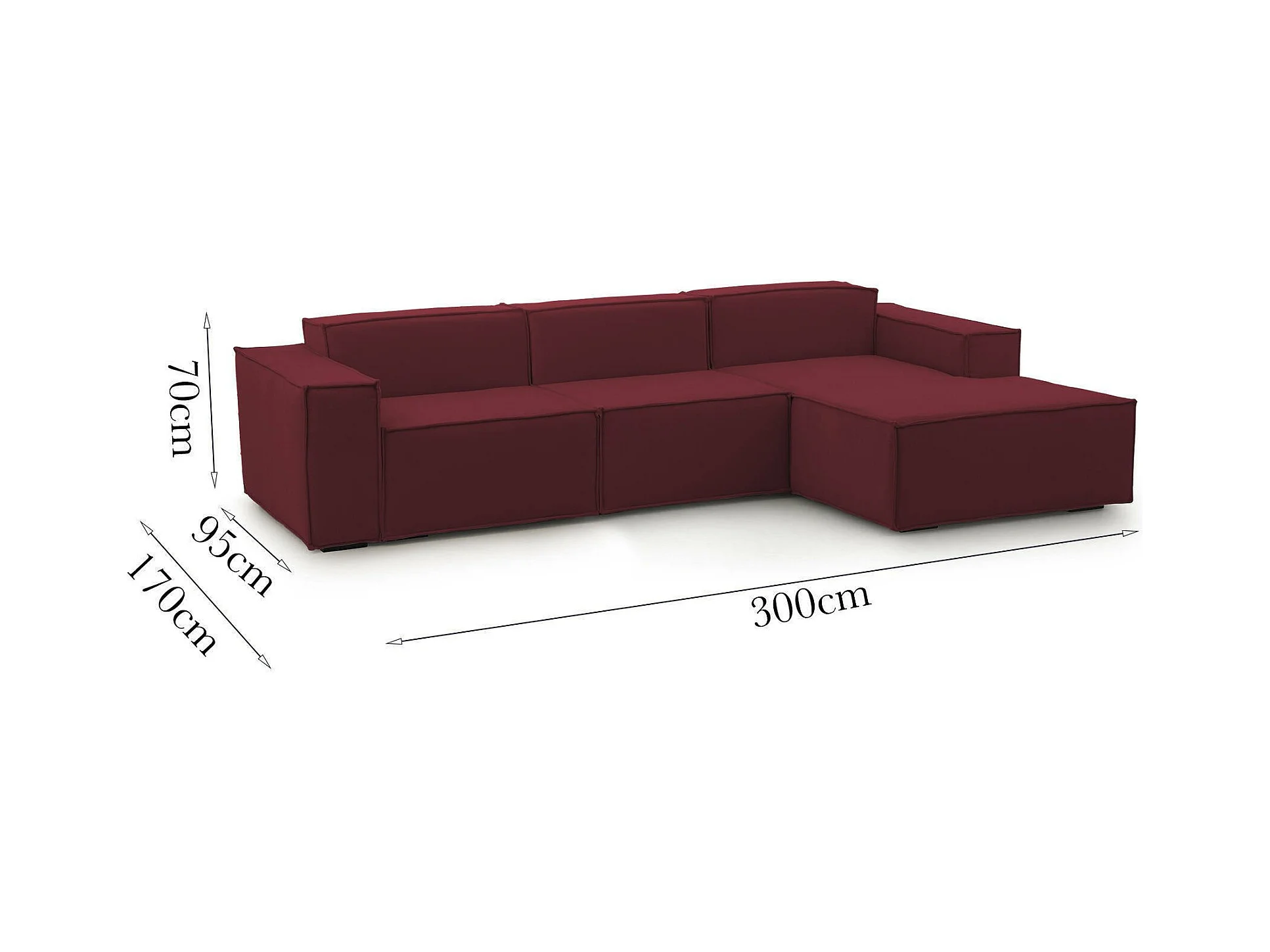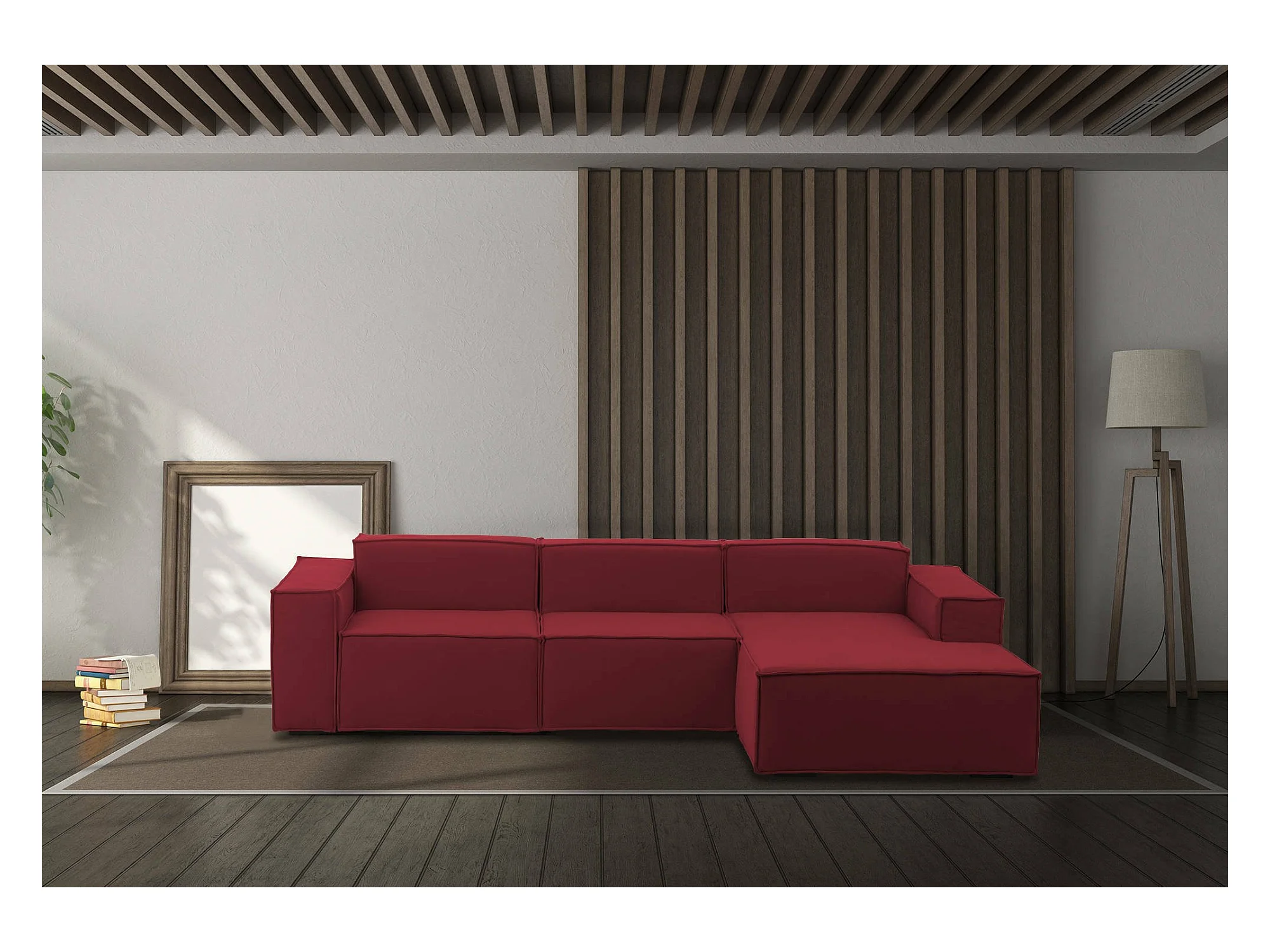 Canapé fixe Ddzek, canapé modulable 3 places avec péninsule droite, 100% Made in Italy, Canapé moderne en tissu, 300x170h70 cm, Rouge