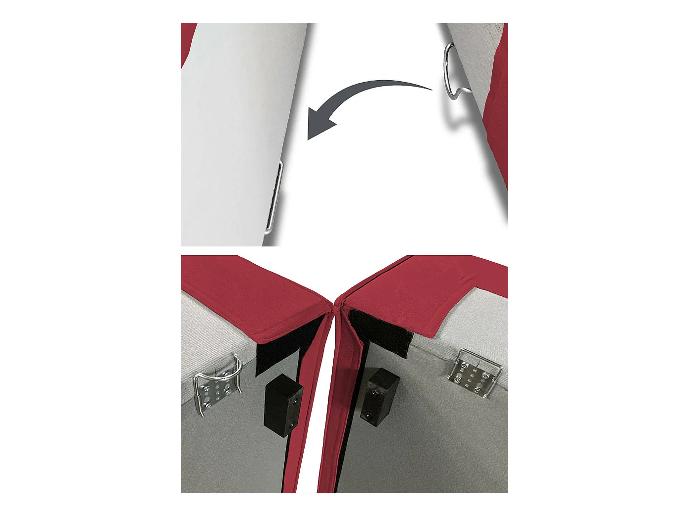 Canapé fixe Jessica, canapé modulable 3 places avec péninsule gauche, 100% Made in Italy, Canapé moderne en tissu, 300x170h70 cm, Rouge